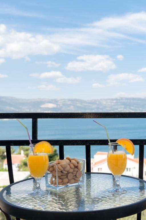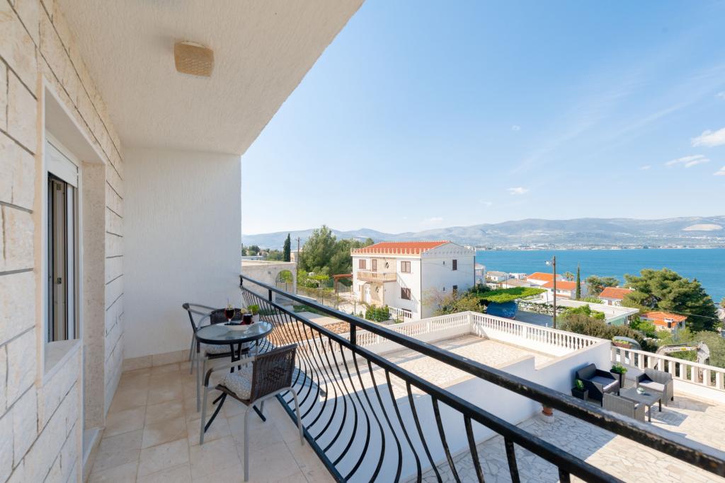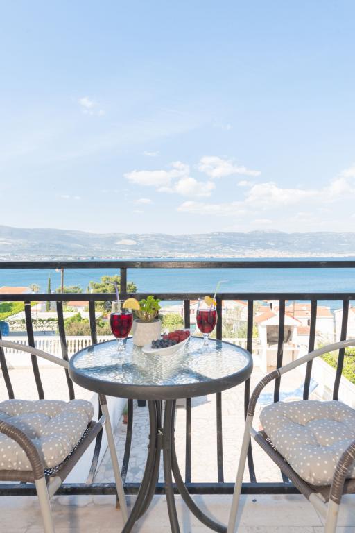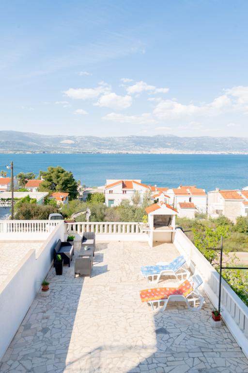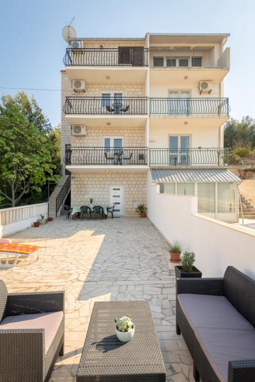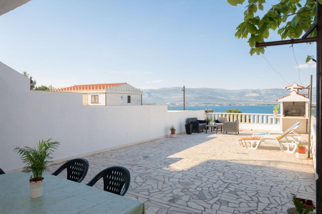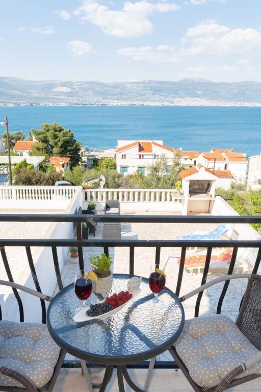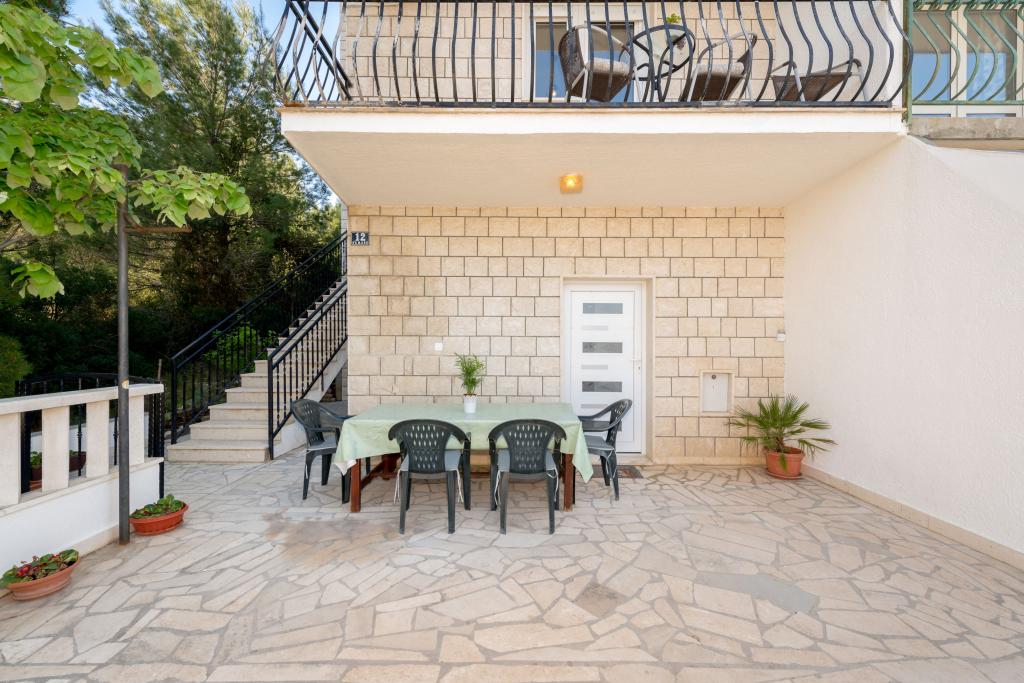 Steinhaus Erdgeschoss und drei Etagen mit einer großen Terrasse und Kamin 70m vom Meer entfernt. Der erste und zweite Stock oder die erste und zweite Wohnung sind zu vermieten. Beide Apartments sind gleichermaßen ausgestattet und bestehen aus einem Schlafzimmer, einem Wohnzimmer mit Schlafsofa, einer Küche mit allem, was für die Zubereitung von Speisen benötigt wird, einschließlich einer Mikrowelle, einem Badezimmer und einem Balkon mit herrlichem Meerblick. Auf Anfrage gibt es ein Zustellbett und ein tragbares Babybett. Unbegrenztes Internet, intelligentes Satellitenfernsehen. Klimaanlage ohne Aufpreis.