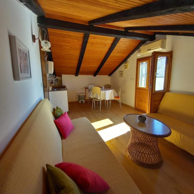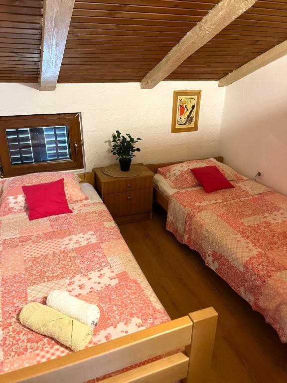 Das Haus mit zwei Ferienwohnungen und einem Parkplatz befindet sich im kleinen, ruhigen Dorf Mušoga-Banjole, nur 300 m vom Strand entfernt. Es eignet sich für zwei Familien. Die Ferienwohnung Oleander 2+2 im 1. Stock (niedriges Dachgeschoss) ist ideal für zwei Erwachsene oder zwei Erwachsene und ein bis zwei Kleinkinder. Die Ferienwohnung ist klimatisiert und besteht aus einem Schlafzimmer mit Doppelbett, einem Badezimmer, einem separaten Raum mit zwei Sofas/Betten, einer Miniküche und einer Terrasse. Die Ferienwohnung Glicinija für vier Personen im Erdgeschoss besteht aus zwei Schlafzimmern, einem Esszimmer, einer Küche, einem Badezimmer und einem ganztägig beschatteten Innenhof. In der Nähe der Ferienwohnung gibt es zahlreiche Strandpromenaden und Radwege. In zehn Gehminuten erreichen Sie einen Supermarkt, eine Bäckerei, einen Fischmarkt, eine Apotheke, einen Fahrradverleih und mehrere Restaurants. Nur 6 km von der Ferienwohnung entfernt liegt die Halbinsel Kamenjak mit wunderschönen Stränden, klarem Meer und einer einzigartigen Safari-Bar. Kommen Sie und genießen Sie Meer, Sonne, mediterrane Düfte und Digital Detox :).