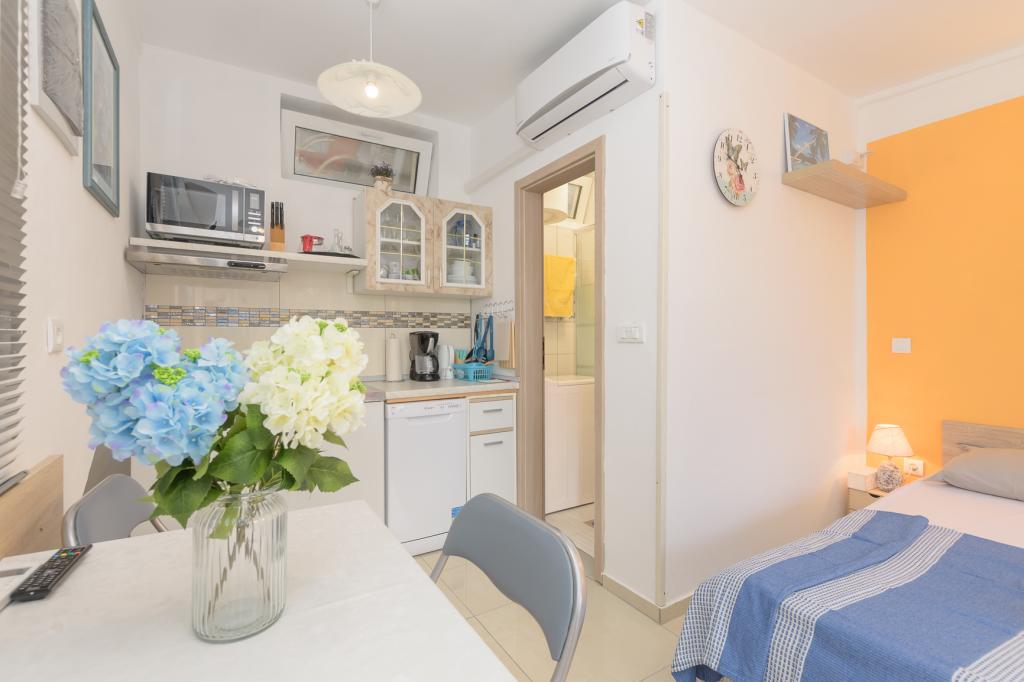 Modern ausgestattetes Studio-Apartment (2+1) erste Reihe zum Meer in einer sehr ruhigen Touristengegend als separates Haus. Eine kleine Terrasse mit Grill, Außendusche und Meerblick von der Terrasse. Für einen angenehmen Aufenthalt im Schatten sorgt eine eigene Markise. Das Geschäft und das Restaurant sind 1000 Meter entfernt und der erste Strand ist 300 Meter entfernt. Das Parken in der Nähe des Gebäudes ist kostenlos. Sie können morgens und abends Spaziergänge am Meer entlang zum Del Mar Hotel und zurück unternehmen. Weiter in der Nähe liegt der Nationalpark Kamenjak-Premantura in einer Entfernung von ca. 4000 Meter.