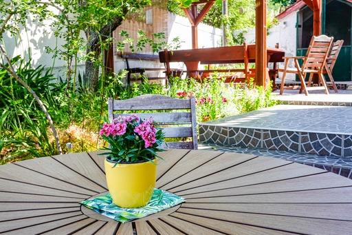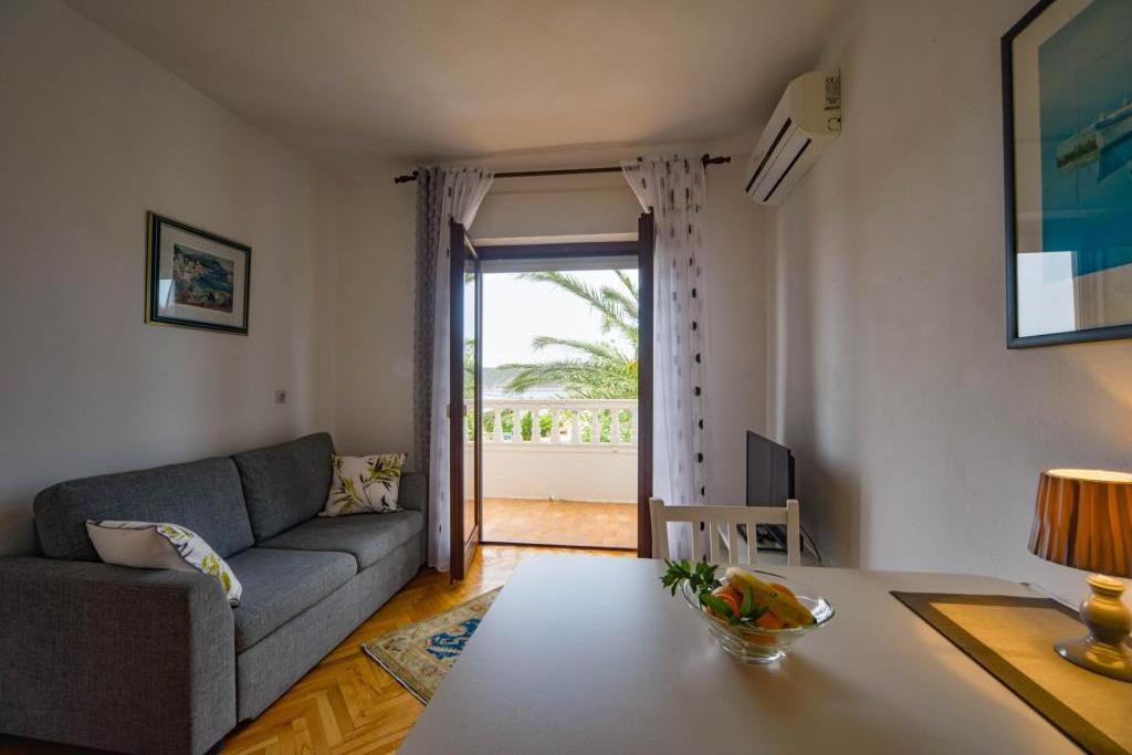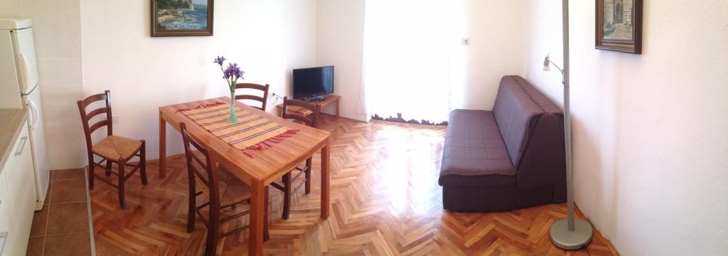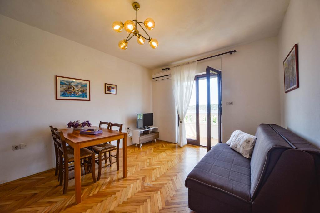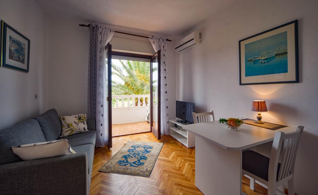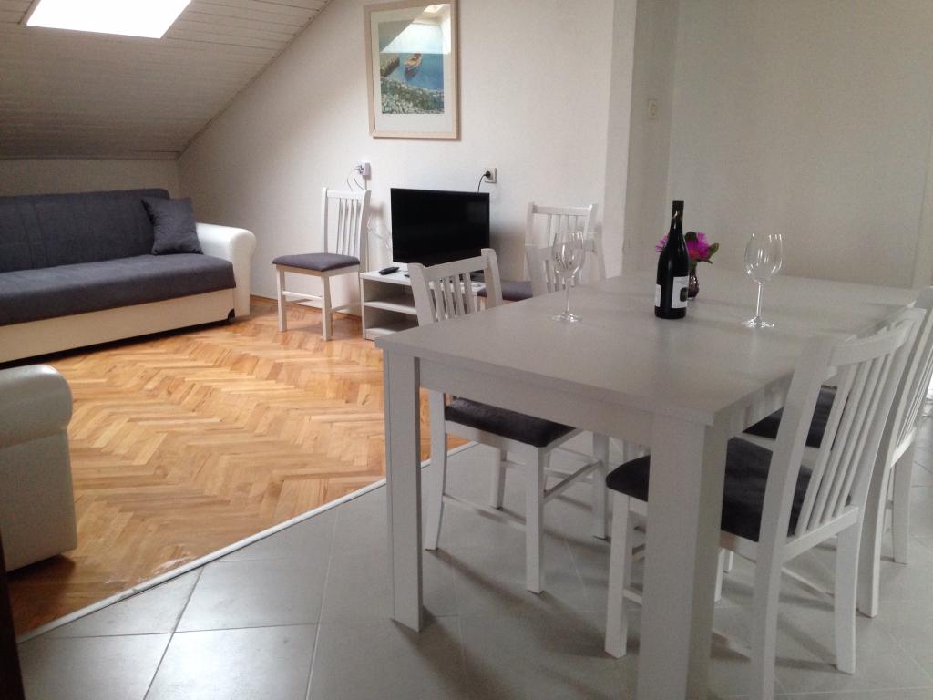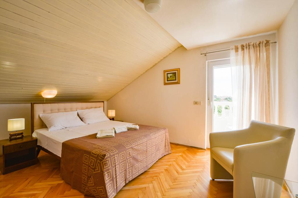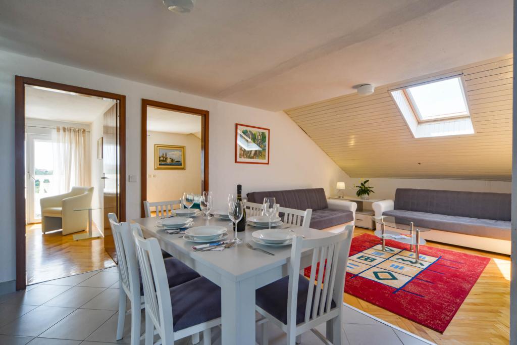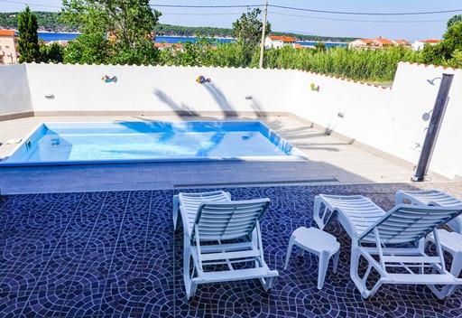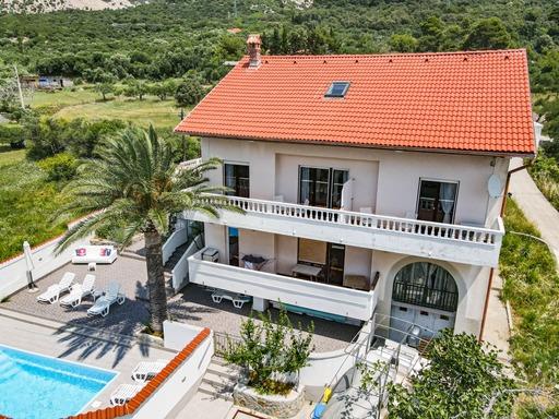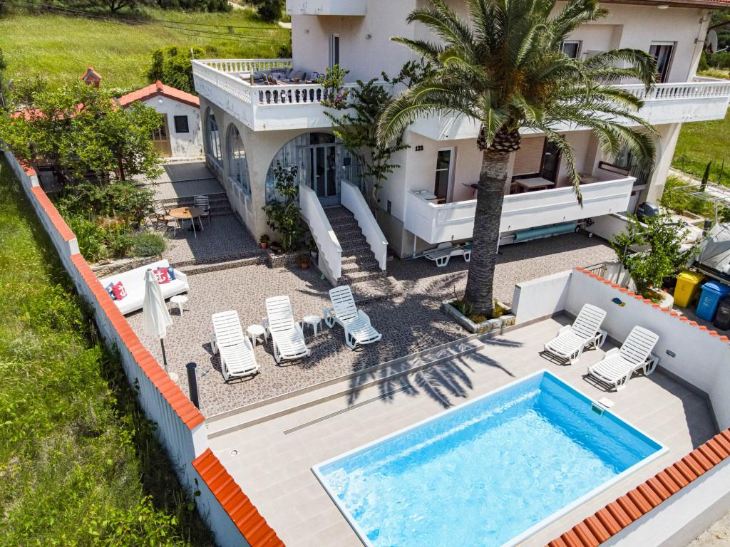 Voll ausgestattete, geräumige Apartments mit Blick auf den Barbat-Kanal und die St.-Damjan-Kirche (Überreste einer byzantinischen Späherfestung aus dem 6. Jahrhundert) bieten ausreichend Platz im Freien, sodass verschiedene Gruppen ihre Privatsphäre auf der großzügigen Terrasse, am Pool oder im schattigen Pavillon neben dem Grillhaus genießen können. Das Haus eignet sich auch für Familien mit bis zu 12 Personen. Kinder und Haustiere sind willkommen. Die Strandpromenade mit Stränden, Restaurants und Cafés ist nur 300 m entfernt (weniger als 5 Gehminuten).
