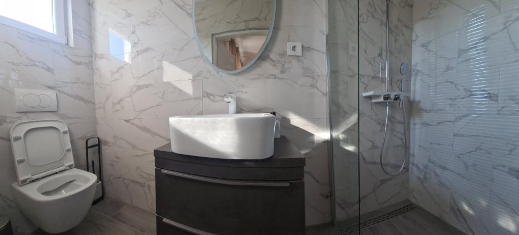 Dieses schöne, moderne Ferienhaus befindet sich in Barbat auf der Insel Rab. Die Apartments sind schön und modern eingerichtet. Wir verfügen über einen eigenen Parkplatz und Bootsliegeplatz. Den Gästen stehen im Garten zwei Grills zur Verfügung. Wir bieten 5 Wohnungen an. Alle Wohnungen verfügen über einen eigenen Eingang. Zahlreiche Restaurants und Geschäfte befinden sich in unmittelbarer Nähe und sind in wenigen Gehminuten erreichbar. Das Zentrum von Rab ist 4 km vom Haus entfernt. Unser Haus liegt nur 50 Meter vom Meer entfernt.