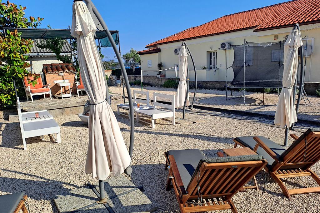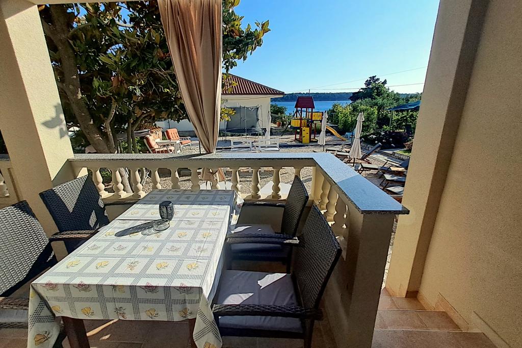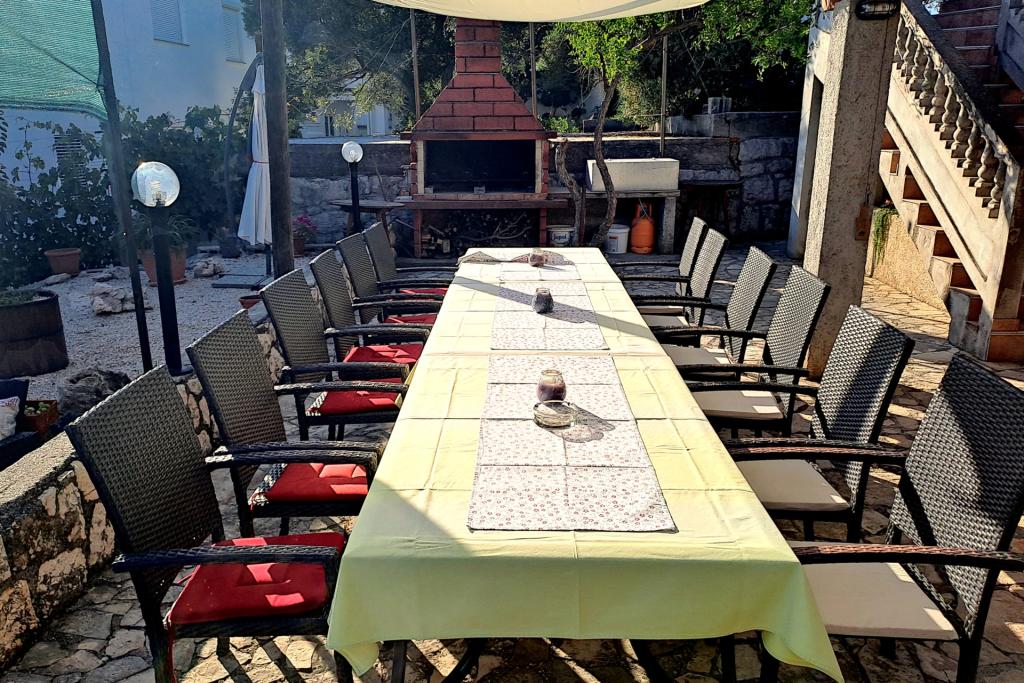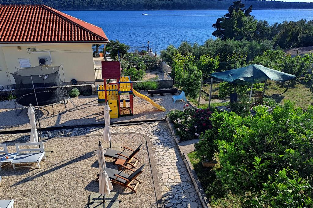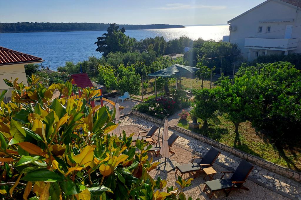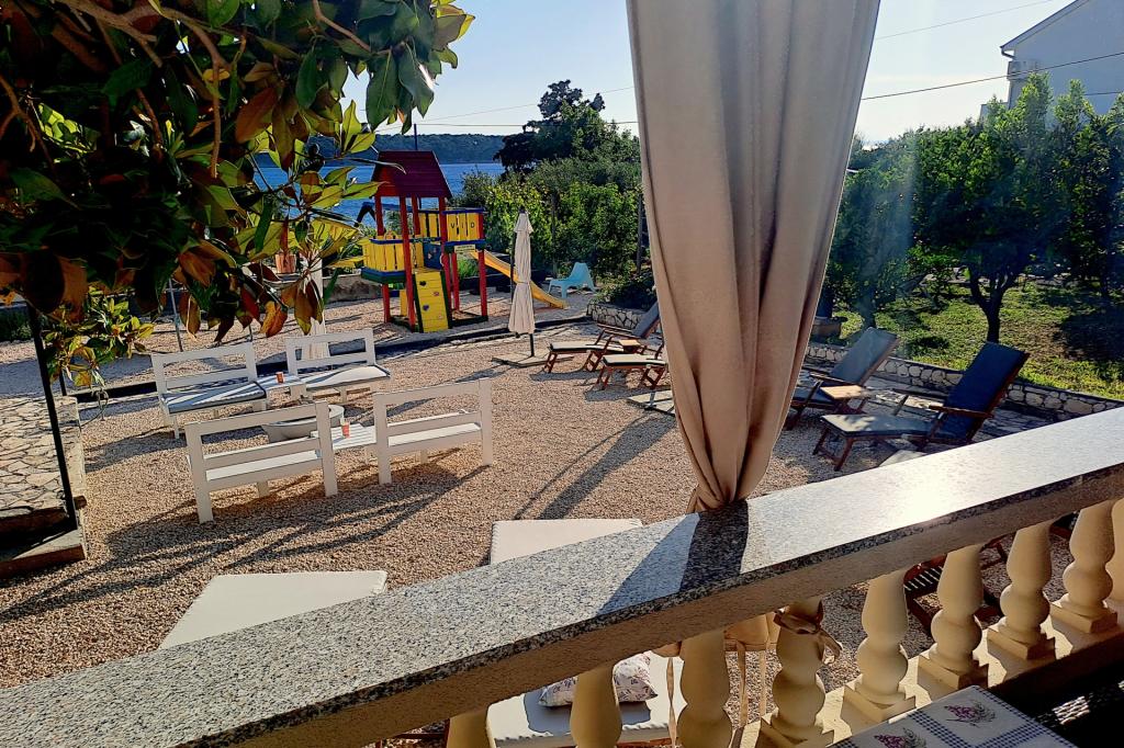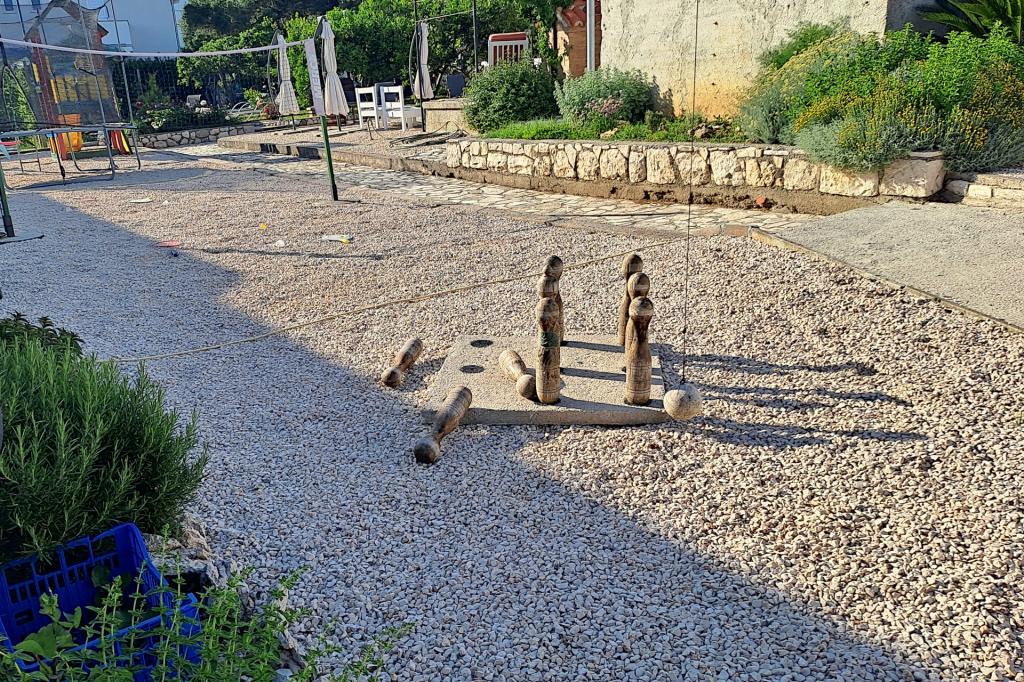 Apartments 30 m vom Meer entfernt, kostenloser Liegeplatz für das Schiff. Das Haus der Familie Snježana und Slobodan (Bobo) Frankić liegt in Barbat auf der Insel Rab, 4 km von der Stadt Rab und 6 km von der Fähre entfernt. Es wurde als einstöckiges Gebäude mit fünf Mietwohnungen, einem Gemeinschaftsraum für Unterhaltung und einer Wohnung, in der die Gastgeber wohnen, gebaut. Das Haus liegt in einer ruhigen Gegend, in einer schönen Wohngegend, ist nur 30 Meter vom Meer entfernt und ist umgeben von einem Parkplatz, einem Blumengarten, einem Obstgarten, einer sonnigen Terrasse mit Liegestühlen, einem Spielplatz für Kinder und Erwachsene und eine gemeinsame Terrasse. Es gibt fünf Wohnungen für 4 Personen: Wohnung 1, Wohnung 3, Wohnung 4, Wohnung 5 und eine Wohnung für 2 Personen: Wohnung 2. Zwei Wohnungen für 4 Personen: Wohnung 1, Wohnung 3 und eine Wohnung für 2 Personen: Wohnung 2 befindet sich im Erdgeschoss und zwei Wohnungen für vier Personen: Wohnung 4, Wohnung 5 im ersten Stock (Gastgeber und gemietete Wohnung 5 teilen sich eine Terrasse). Alle Wohnungen verfügen über eine Klimaanlage. Gratis Wifi