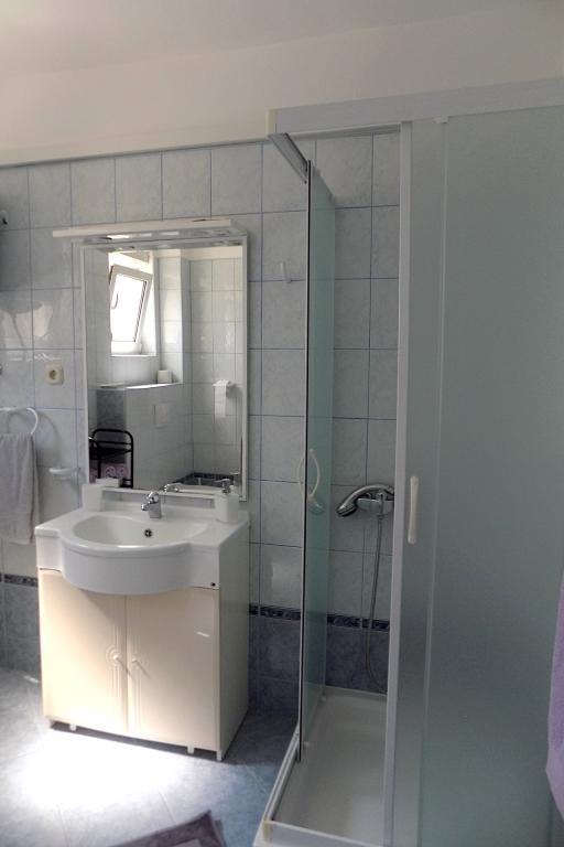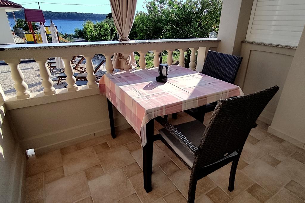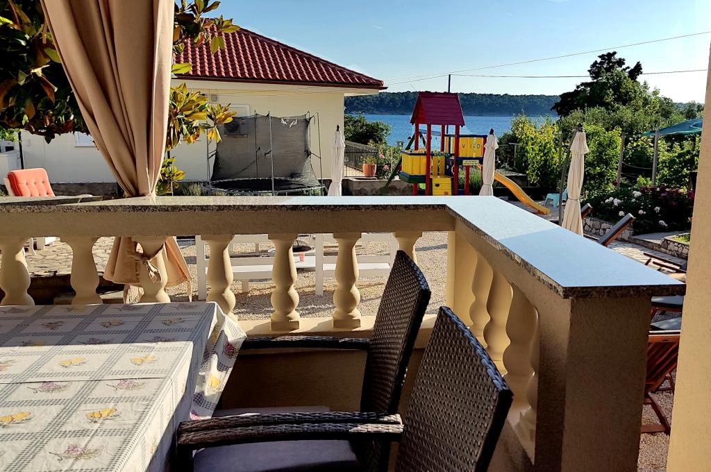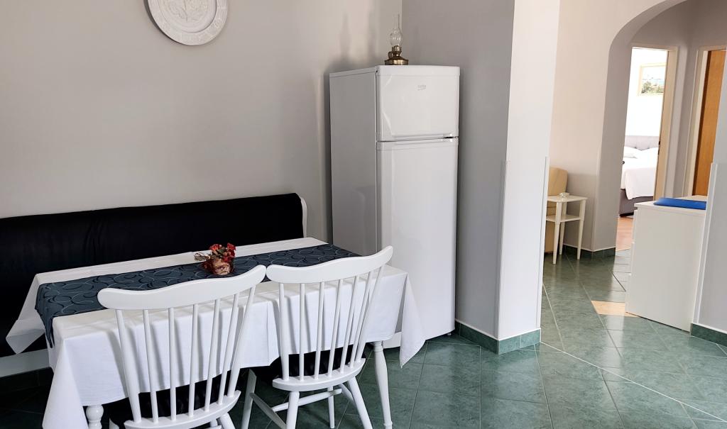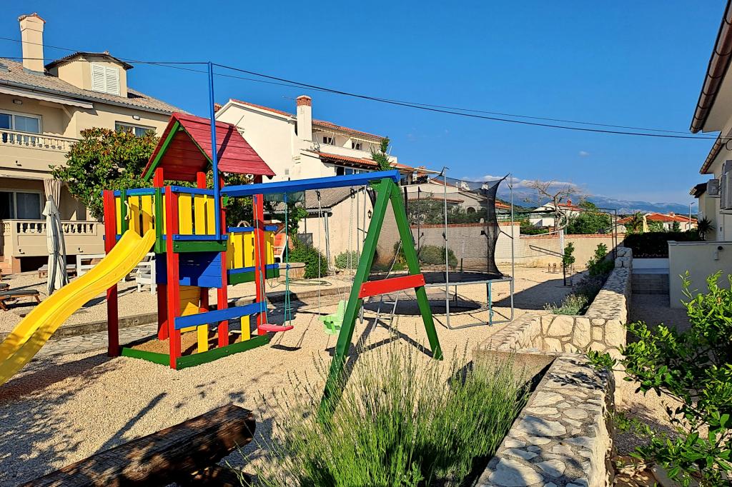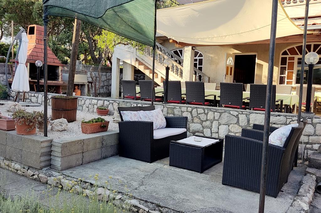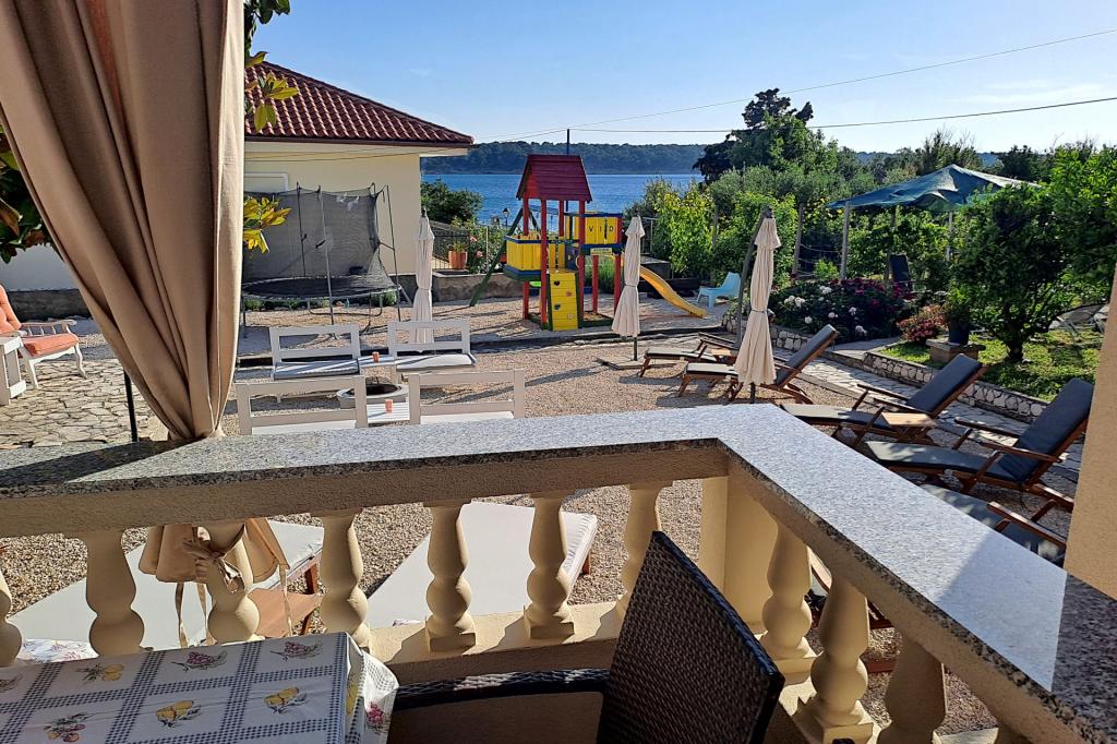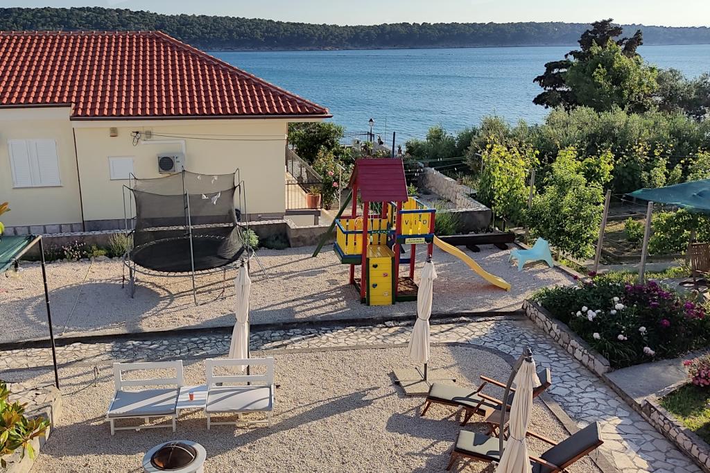 Apartments 30 m vom Meer entfernt, kostenloser Liegeplatz für das Schiff. Das Haus der Familie Snježana und Slobodan (Bobo) Frankić liegt in Barbat auf der Insel Rab, 4 km von der Stadt Rab und 6 km von der Fähre entfernt. Es wurde als einstöckiges Gebäude mit fünf Mietwohnungen, einem Gemeinschaftsraum für Unterhaltung und einer Wohnung, in der die Gastgeber wohnen, gebaut. Das Haus liegt in einer ruhigen Gegend, in einer schönen Wohngegend, ist nur 30 Meter vom Meer entfernt und ist umgeben von einem Parkplatz, einem Blumengarten, einem Obstgarten, einer sonnigen Terrasse mit Liegestühlen, einem Spielplatz für Kinder und Erwachsene und eine gemeinsame Terrasse. Es gibt fünf Wohnungen für 4 Personen: Wohnung 1, Wohnung 3, Wohnung 4, Wohnung 5 und eine Wohnung für 2 Personen: Wohnung 2. Zwei Wohnungen für 4 Personen: Wohnung 1, Wohnung 3 und eine Wohnung für 2 Personen: Wohnung 2 befindet sich im Erdgeschoss und zwei Wohnungen für vier Personen: Wohnung 4, Wohnung 5 im ersten Stock (Gastgeber und gemietete Wohnung 5 teilen sich eine Terrasse). Alle Wohnungen verfügen über eine Klimaanlage. Gratis Wifi