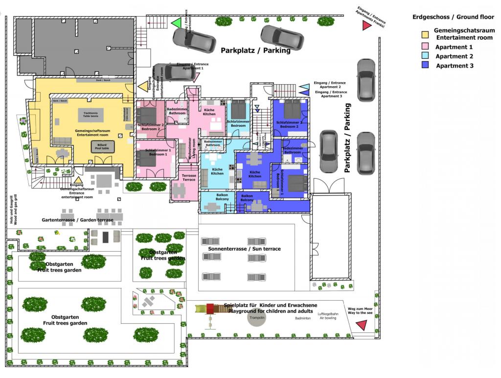 Gartenterrasse mit Holz- und Gasgrill, Gartenmöbeln, Sonnenschirmen, Versammlungen im Freien warten nur auf Sie! Es gibt nichts Schöneres, als die Natur bei gutem Essen und angenehmer Gesellschaft zu genießen. Entspannen Sie sich und genießen Sie die Sonne auf den Liegestühlen auf der Sonnenterrasse. Wenn Sie Lust auf etwas Aktivität haben, gibt es im Garten einen Spielplatz für Kinder und Erwachsene. Es gibt ein Trampolin, Badminton und Airbowling sowie für Ihre jüngsten Mitglieder Schaukeln, eine Rutsche und Sand für Kinder. Im Gemeinschaftsraum gibt es Tischtennis, Billard, elektronische Darts, Tischfußball und Sat-TV. 30 Meter vom Haus entfernt gibt es einen kleinen Strand und kostenlose Bootsliegeplätze am Pier. Für das Boot nutzen wir 5 Liegeplätze. Sie müssen das Boot bei der Buchung anmelden. Wenn Sie mit einem Anhänger und einem Boot anreisen, parken Sie bitte zuerst das Boot und den Anhänger am Kran. Auf der schmalen Auffahrt zu unserem Haus gibt es keine Möglichkeit zum Abbiegen. Haftungsbeschränkung: Wir übernehmen keine Verantwortung für die Anschlüsse und deren Zustand. Es liegt in Ihrer Verantwortung als Bootsbesitzer, das Boot ordnungsgemäß festzumachen.
