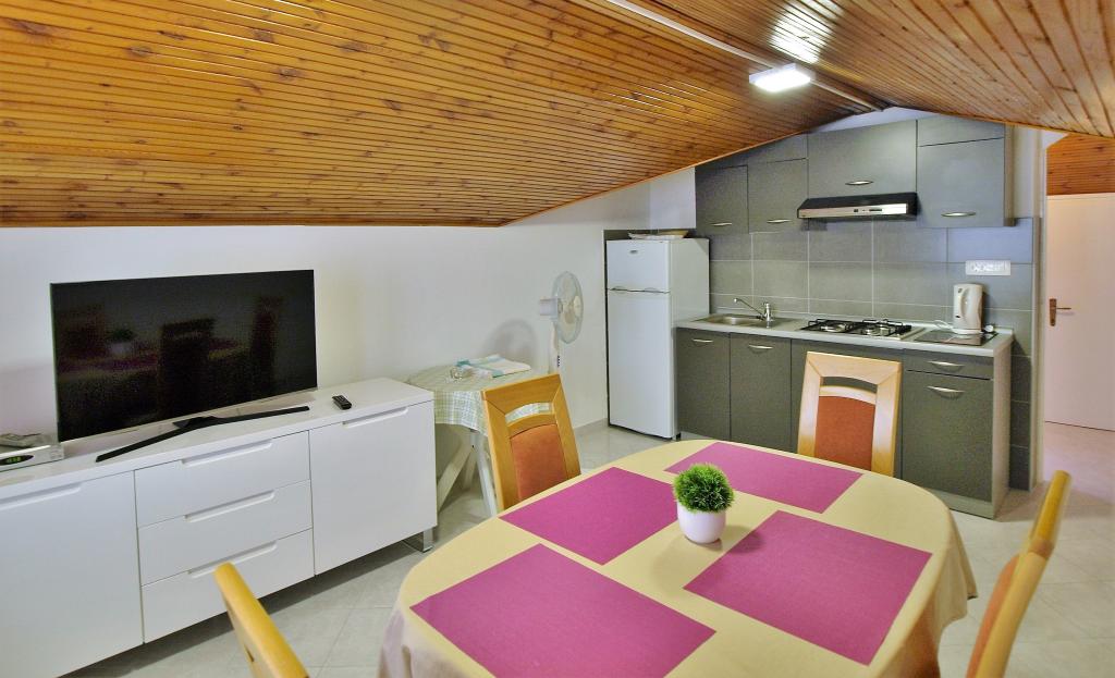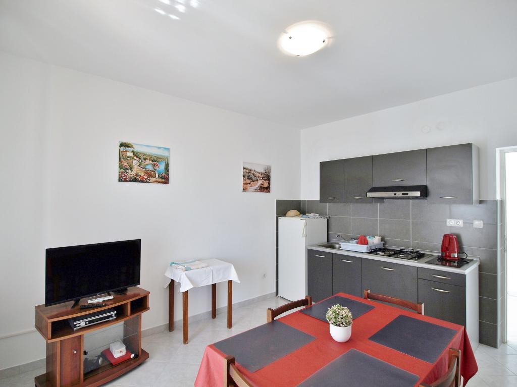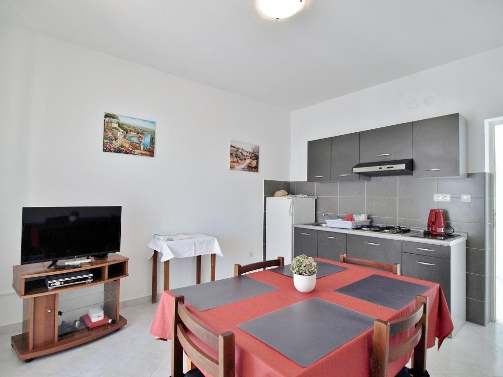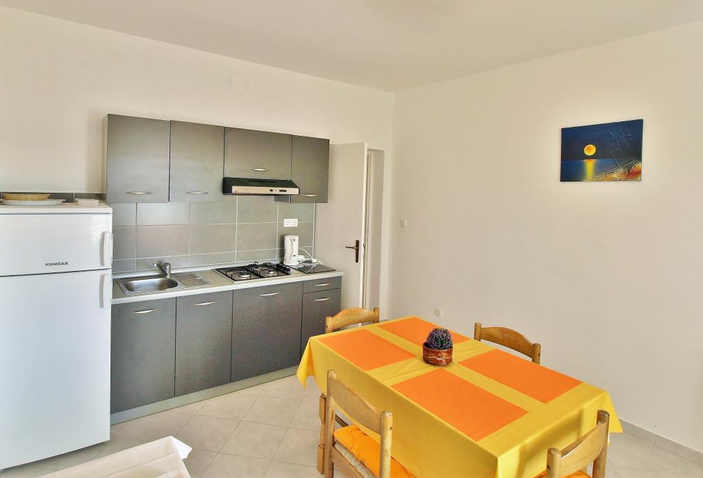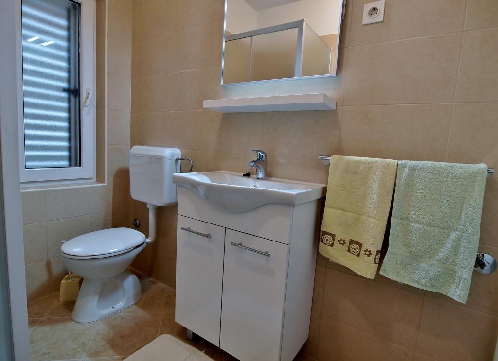Liebe Gäste! Wir bieten Apartments für 4 Personen an. Jede Wohnung besteht aus zwei Doppelzimmern, Küche mit Esszimmer und außerdem hat jedes Zimmer ein eigenes Bad oder Dusche/WC. Alle Wohnungen haben einen Balkon/Terrasse mit Meerblick, verfügen über Sat-TV und sind klimatisiert. Bettwäsche und Handtücher sowie alles, was Sie sonst noch für einen angenehmen Urlaub brauchen, sind in den Appartements vorhanden und Sie brauchen nichts mit in den Urlaub zu nehmen. Bettwäsche wird einmal pro Woche gewechselt und Handtücher nach Wunsch. Draußen haben wir eine große Terrasse und ein Esszimmer sowie einen großen Grill / Grill im Hof, den Sie nach Belieben nutzen können. Es besteht auch die Möglichkeit, eine Waschmaschine zu benutzen.