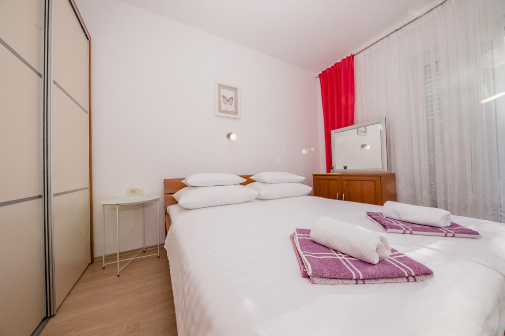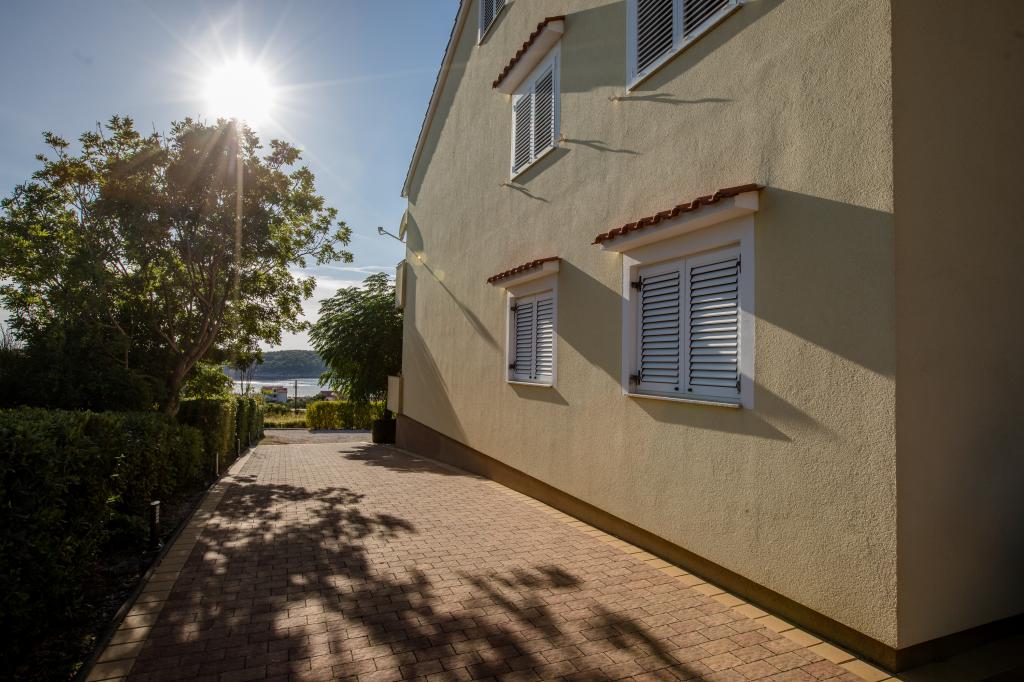 Komplett und modern ausgestattete Apartments in ruhiger Lage, 300 m vom Kiesstrand entfernt. Die Anlage liegt 6 km vom Zentrum von Rab, 2 Gehminuten vom Geschäft, 10 Gehminuten vom Strand und 10 Gehminuten vom nächsten Restaurant entfernt. Im Hof gibt es einen gemeinsamen überdachten Bereich mit Tischen und Bänken und einem Grill sowie einen Kinderspielplatz mit zwei Schaukeln und einem Trampolin. Die Wohnungen eignen sich sowohl für Familien mit Kindern als auch für alle anderen Menschen, die einen ruhigen Urlaub suchen.
