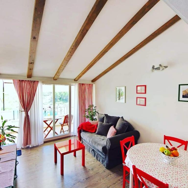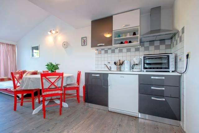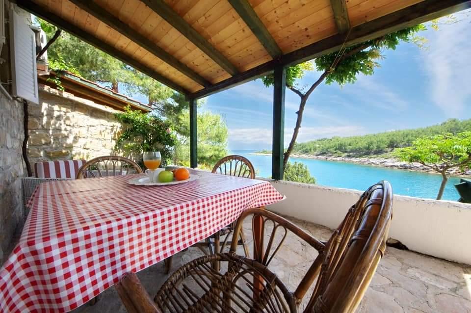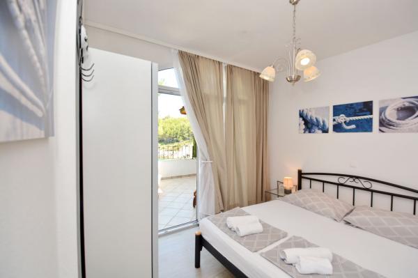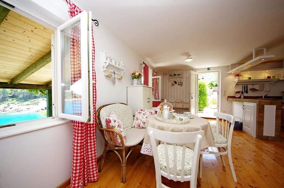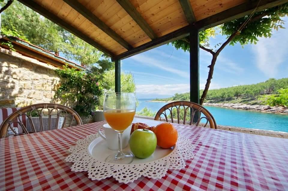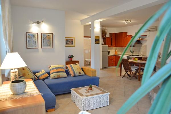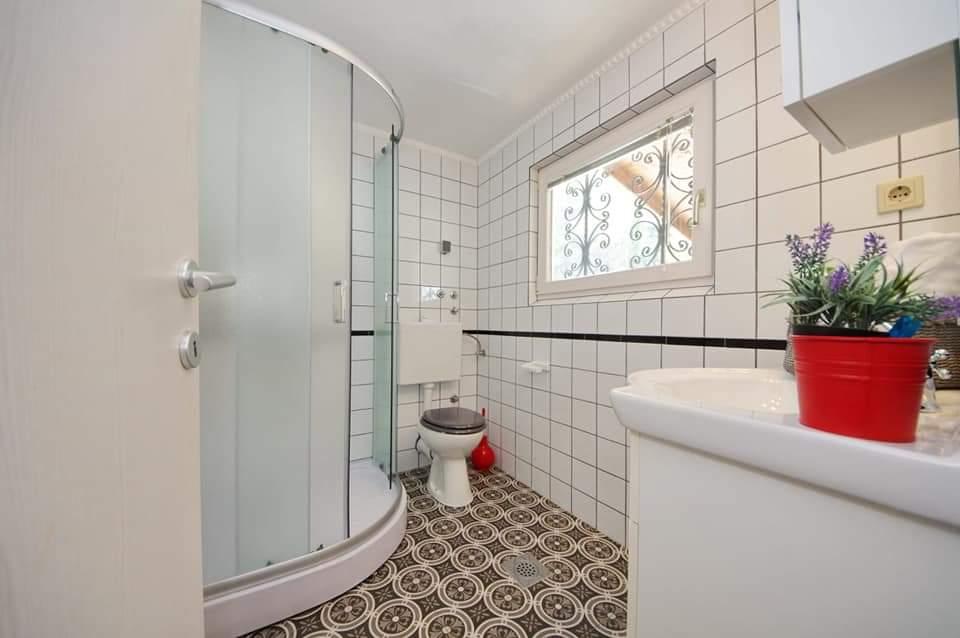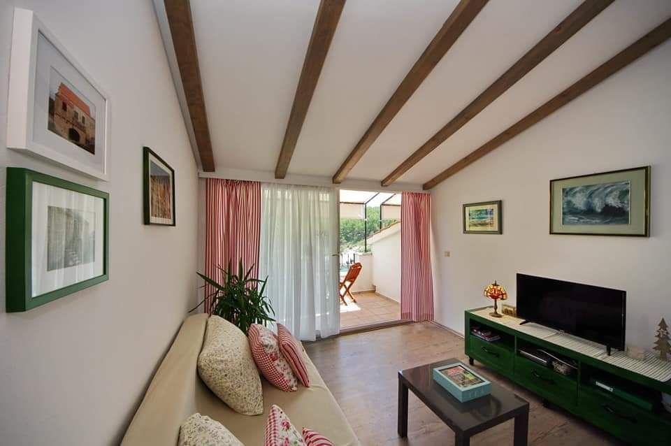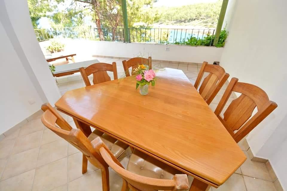 Apartmenthaus, kaskadiert, in einer wunderschönen ruhigen Bucht, erste Reihe zum Meer, mit 6 voll ausgestatteten Apartments, Fitnessraum, privatem Parkplatz, 2 Außenkaminen, 2 Außenduschen, Liegewiese, Außenwhirlpool, Kinderspielplatz und Garten. RUZMARIN (2) - 21 m2, separater Eingang, Erdgeschoss, Terrasse 20 m2, Wohnzimmer mit Küche und WC. KADULJA (4) – 60 m2, separater Eingang, mittlere Etage, Terrasse 25 m2, Wohnzimmer mit Küche und 2 Schlafzimmer mit 2 Toiletten. FIG (2) - 40 m2, separater Eingang, Obergeschoss, Terrasse 7 m2, Wohnzimmer mit Küche, WC und Schlafzimmer im Dachgeschoss. LAVANDA (4+1) – 60 m2, separater Eingang, Obergeschoss, Terrasse 15 m2, Eingangshalle, Wohnzimmer mit Küche und 2 Schlafzimmer mit 2 Toiletten. MASLINA (4) – 65 m2, separater Eingang, mittlere Etage, Terrasse 20 m2, Eingangshalle, Wohnzimmer mit Küche und Kamin, 2 Schlafzimmer mit 2 Toiletten. LOVOR (2+1) - 45 m2, separater Eingang, Erdgeschoss, Terrasse 20 m2, Wohnzimmer mit Küche und Schlafzimmer mit WC.