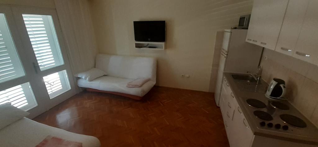 Die Apartments Zdravka befinden sich in einem ruhigen Teil von Baška Voda, in der Zagradina 10, in vierter Reihe vom Meer und nur 70 Meter von einem gepflegten Kiesstrand entfernt. Die Lage bietet die ideale Kombination aus Meeresnähe und einem erholsamen Urlaub fernab vom Stadtlärm. Die Apartments sind modern ausgestattet und verfügen über neue Klimaanlagen, TV, eine voll ausgestattete Küche, Glasfaser-Internet und alles, was Sie für einen angenehmen Aufenthalt benötigen. Ein privater Parkplatz, ca. 200 Meter vom Haus entfernt, ist im Preis inbegriffen. In der Nähe finden Sie Strandbars, Cafés, Restaurants, Bäckereien und Geschäfte. Ein besonderes Highlight ist die wunderschöne Strandpromenade, die nach Brela und Makarska führt und sich ideal für Spaziergänge und zum Genießen des mediterranen Flairs eignet.