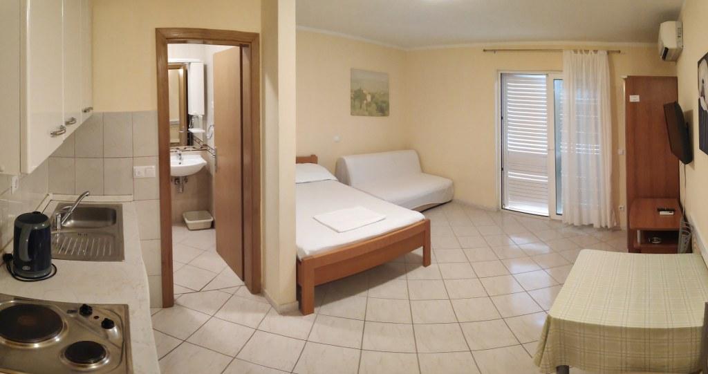Aufgeregte Besitzer begrüßten uns mit einem kalten Bier. Eigentümer Ante serviert natürlich den besten gegrillten Fisch gegen eine kleine Gebühr. Zimmer sauber und geräumig. Könnte einen zusätzlichen Kleiderschrank im großen Zimmer gebrauchen. Unterkunft nahe dem Zentrum und Kiesstrand. Buchstäblich eine Minute die Treppe hinunter. Ein kleiner Nachteil ist das Auto auf der Straße etwas weiter, aber der Besitzer hilft gerne mit dem Gepäck. Dafür sorgt die wirklich tolle Lage. Wir empfehlen einen Spaziergang entlang der Promenade nach Brela.