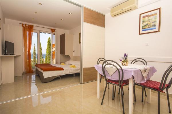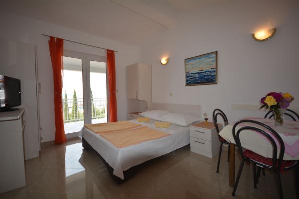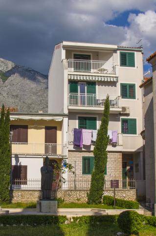 Willkommen! Das Haus befindet sich in der Nähe vom Zentrum und vom langen Kieselstrand mit der Blau Flagge. Auf Balkon man wird die Inseln und das wundershöne blaue Meer mit den schönsten Sonnenuntergänge sehen. Besuchen Sie Baška Voda und seien Sie unsere Gäste! Wir vermieten 3 Ferienwohnungen für 2 bis 4 Personen im Haus. Die FWO 1*** (1. Stock, Typ Studio) biete: 1/2 Zimmer mit der Küche und Eßraum, ein Sofa (das Einzelbett werden kann), Klimaanlage, SATV, Schließfach, Internet, Badezimmer, Balkon und Meerblick an. Die FWO 2*** (2. Stock, Typ Studio) biete 1/2 Zimmer, 1/2 Zimmer mit der Küche und Eßraum, Klimaanlage, SATTV, Schließfach, Internet, Badezimmer, Balkon und Meerblick an. Die beide Betten sind Doppelbetten. Die FWO 3*** (3. Stock, Typ Studio) biete: 1/2 Zimmer, 1/2 Zimmer mit der Küche und Eßraum, Klimaanlage, SATTV, Schließfach, Internet, Badezimmer, Balkon und Meerblick an. Die beide Betten sind Doppelbetten. Der Parkplatz ist nicht weit von dem Haus.
