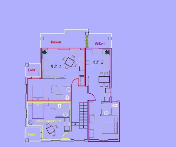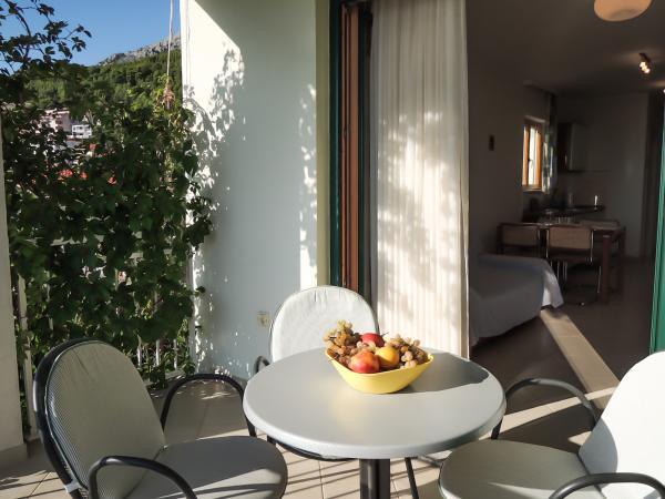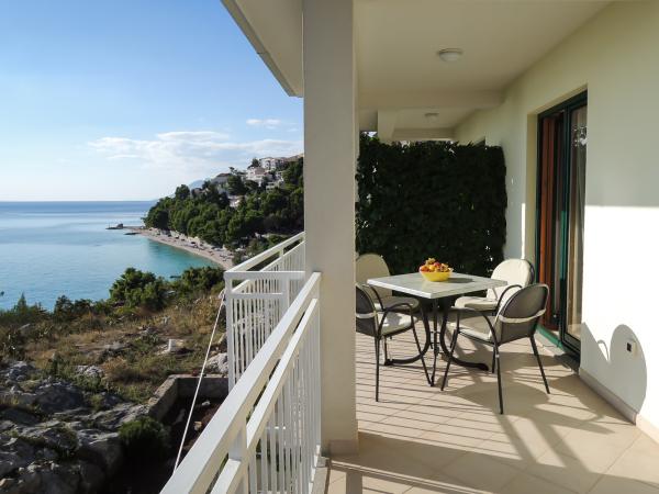 Apartments mit Meerblick, Löhne und Inseln, befindet sich im ersten Stock eines Hauses in einer ruhigen Gegend von Baska Voda auf einem kleinen Hügel namens Gradina 20 m über dem Meeresspiegel und 30 m vom Meer entfernt, 2 -3 Minuten vom schönsten Strand und 5 befinden sich Minuten vom Zentrum von Baska Voda. Private Parkplätze vor dem Haus.