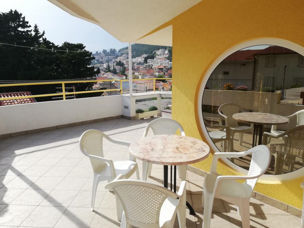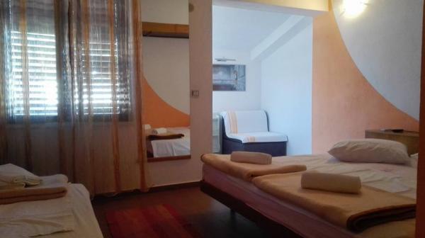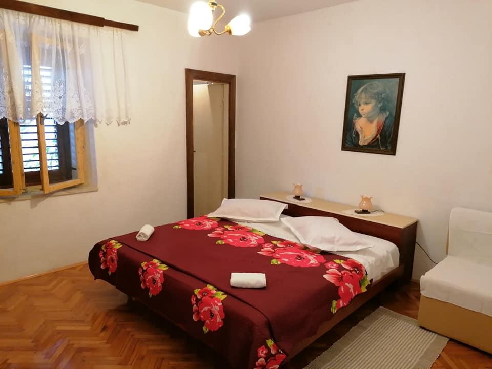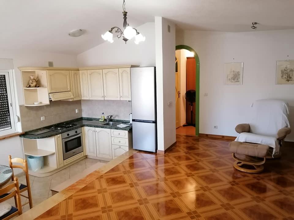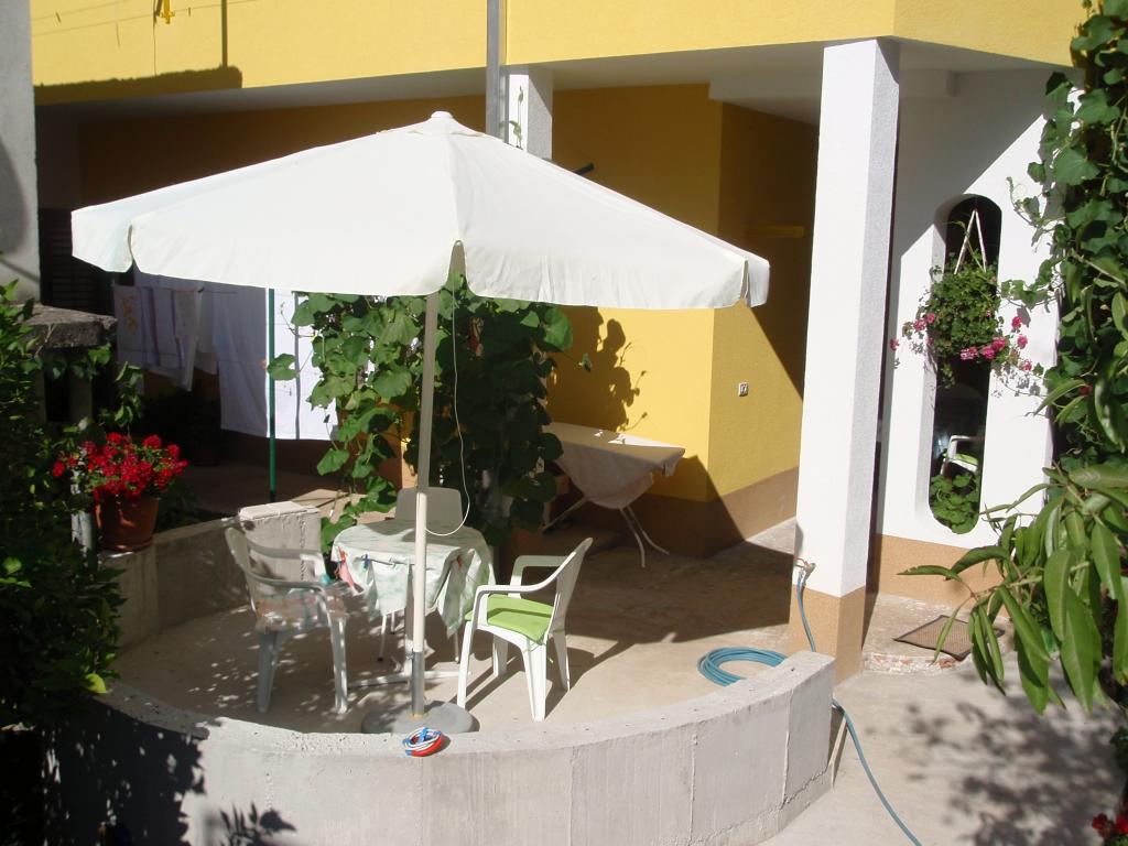 . Apartment, Unterkunftseinheit befindet sich auf der ersten Etage. Inhalt: Zwei Schlafzimmer - ein Dreibettzimmer und ein Doppelzimmer - jedes Zimmer hat eine eigene Toilette-Dusche, TV, Klimaanlage, Kühlschrank. Die Wohnung hat auch eine Küche und eine geräumige Terrasse / entlang. 12 m /. Die Wohnung ist komplett mit Bettwäsche, Handtüchern, Küche mit Kit von Küchenservice, Wi-Fi, reservierten Parkplatz ausgestattet. Entfernung vom Strand beträgt 150 m. Da die Wohnung in der Mitte des Dorfes ist alle notwendigen Einrichtungen wie; Restaurants, Café-Bars, Hotels, verschiedene Terrassen, Bank, Post, Krankenwagen, etc ..., sind von 50 bis max. 200 m. Der Gast kann auch Fahrräder für Erholung, ein 7-m-Boot mit einem Skipper für Tagesausflüge zu interessanten Zielen und Angeln sowie verschiedene touristische Informationen während Ihres Aufenthalts anbieten. Der Vermieter steht Ihnen zur Verfügung.