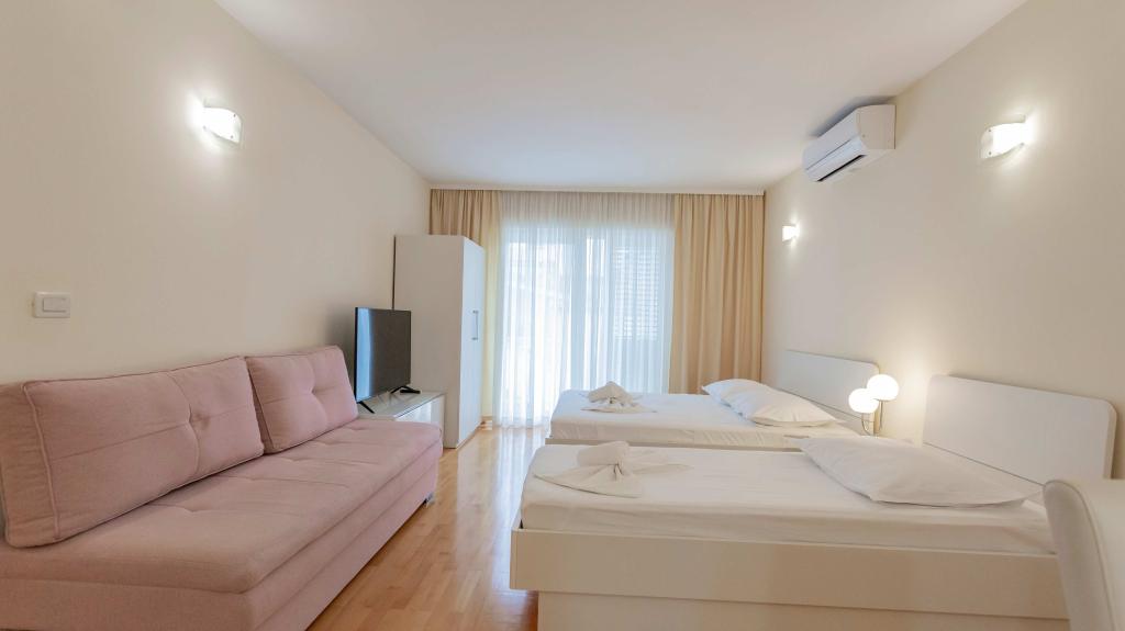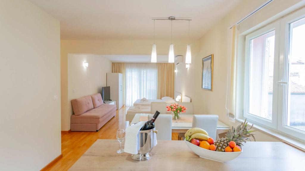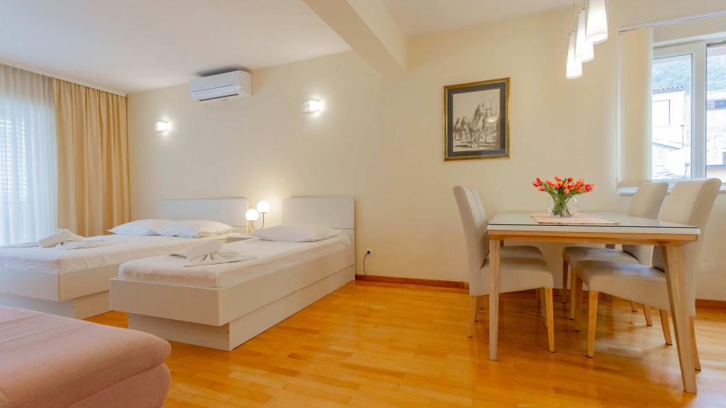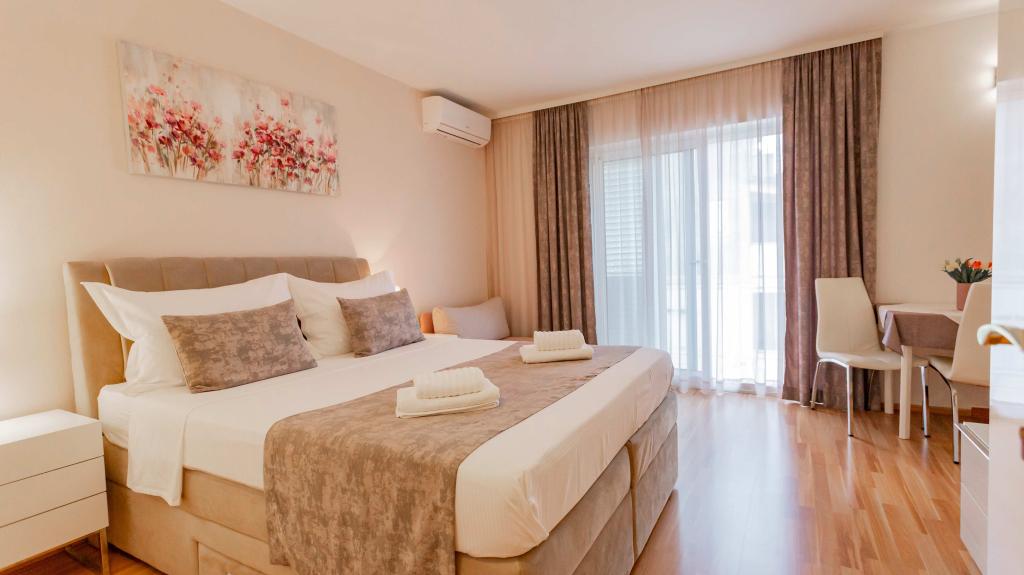 Unsere voll ausgestatteten Apartments liegen in einer ruhigen Straße im Herzen von Baška Voda, nur 2 Gehminuten vom Hauptstrand, Geschäften, Restaurants und dem Stadtzentrum entfernt. Jedes Apartment verfügt über eine Klimaanlage, kostenloses WLAN und einen privaten Parkplatz vor dem Gebäude. Sie sind die ideale Wahl für Gäste, die die Nähe zum Meer genießen, aber im Urlaub auch Ruhe und Komfort genießen möchten.