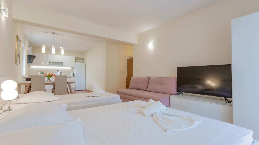 Ich war das zweite Jahr in Folge in den Apartments Pavokovic und kann nur das Beste darüber sagen. Die Lage ist großartig, ebenso wie der Strand weniger als eine Minute zu Fuß entfernt ist. Die Wohnung ist sauber und hat alles, was man für einen Urlaub braucht. Kostenlose Parkplätze vor der Wohnung sind inklusive. Die Besitzer sind höflich und sehr freundlich. Der Bonus ist, dass die Besitzer für die Miete von Strandliegen und Sonnenschirmen am Strand bezahlen, sodass Sie sie dort bekommen und diese am Strand für Sie reservieren können. Alle Empfehlungen gelten für diesen Ort. Ich hoffe, bald wieder dort zu sein.