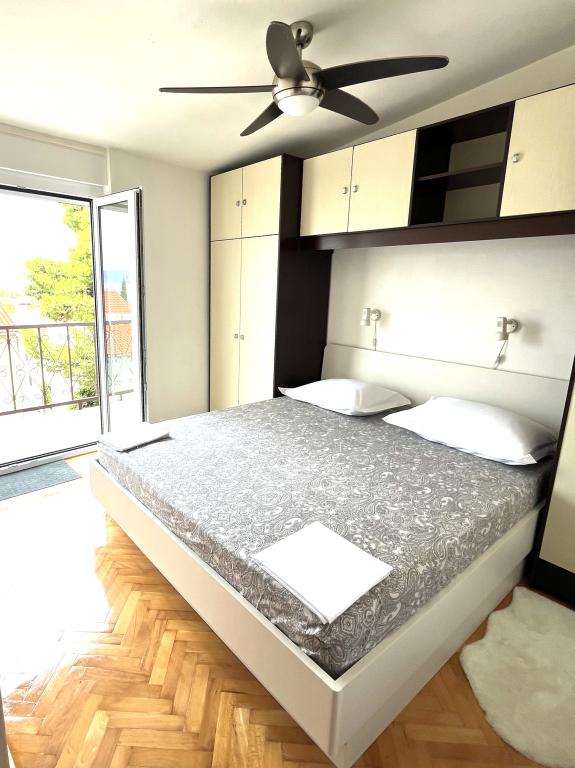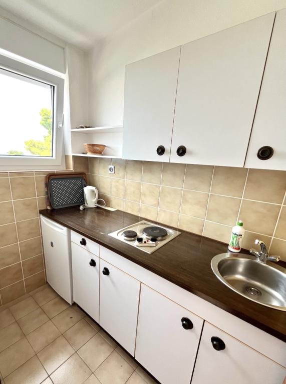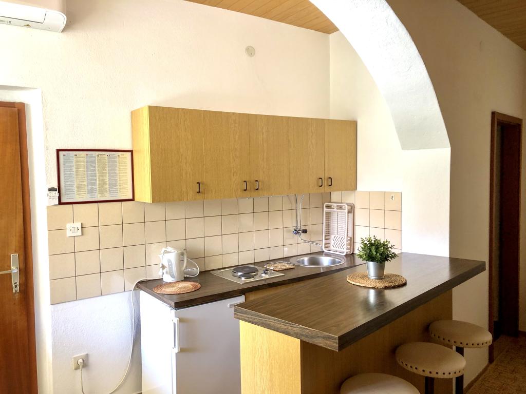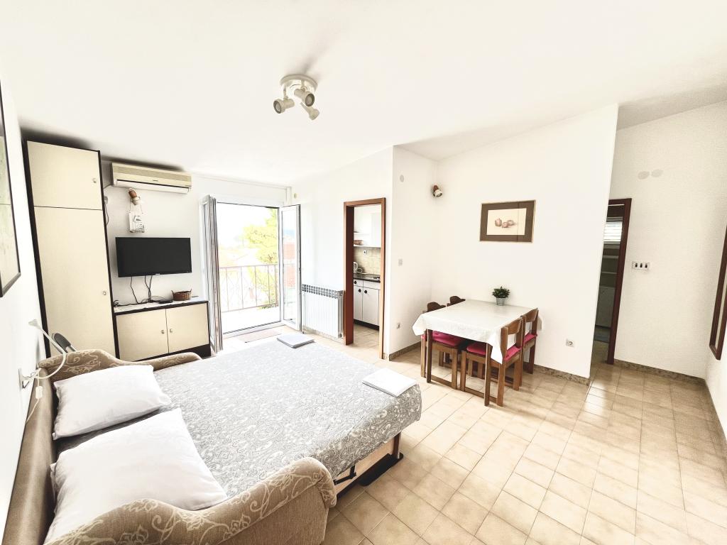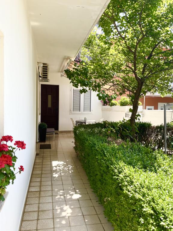 Willkommen in unserem Familienhaus in einem ruhigen Teil des Zentrums von Baška Voda, direkt neben dem Kiefernwald und der Kirche St. Liebhaber. Das Haus liegt 2 Gehminuten vom Meer und dem Kiesstrand entfernt und bietet einen wunderschönen Blick auf den Berg Biokovo und die Inseln Brač und Hvar. Die Wohnung im Erdgeschoss ist ideal für ein Paar mit Kindern oder zwei Paare. Es umfasst eine Küche, ein Hauptschlafzimmer mit Bad und ein separates Zimmer mit eigenem Bad, was für zusätzliche Privatsphäre und Komfort sorgt. Die Terrasse bietet einen Blick auf unseren Garten und den nahegelegenen Pinienwald und eignet sich perfekt für den Morgenkaffee oder die Entspannung am Abend. Die Wohnung im zweiten Stock bietet eine außergewöhnliche freie Aussicht und ist ideal für ein Paar mit Kindern oder nur ein Paar. Es verfügt über eine separate Küche, ein Wohnzimmer mit einem großen Schlafsofa, ein Schlafzimmer und ein Badezimmer. Die große Terrasse ist ein idealer Ort, um während Ihres Urlaubs Privatsphäre zu genießen. Wir stellen unseren Gästen einen privaten Parkplatz 7 Gehminuten vom Haus entfernt zur Verfügung. Kommen Sie und erleben Sie unsere Gastfreundschaft und genießen Sie die ideale Lage für einen perfekten Urlaub in Baška Voda!