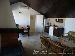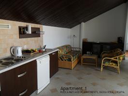 Komplett und modern ausgestattete Apartments im Zentrum von Baska Voda, aber in einer völlig ruhigen und friedlichen / Sackgasse. Entfernung vom Strand, Geschäften, Zentrum nur 100 Meter.