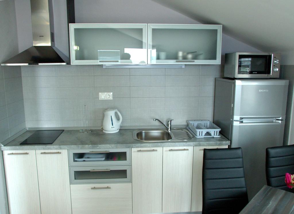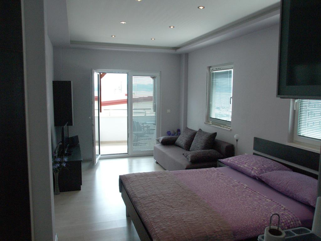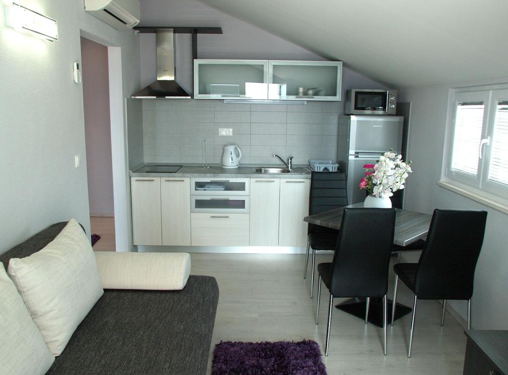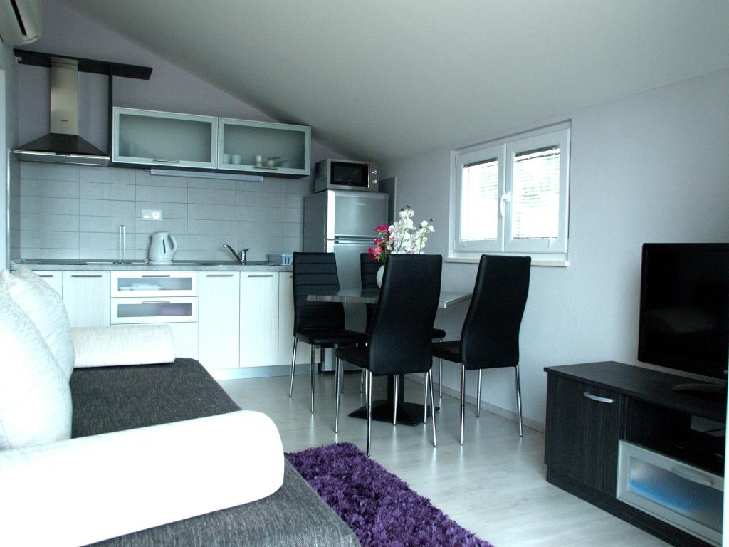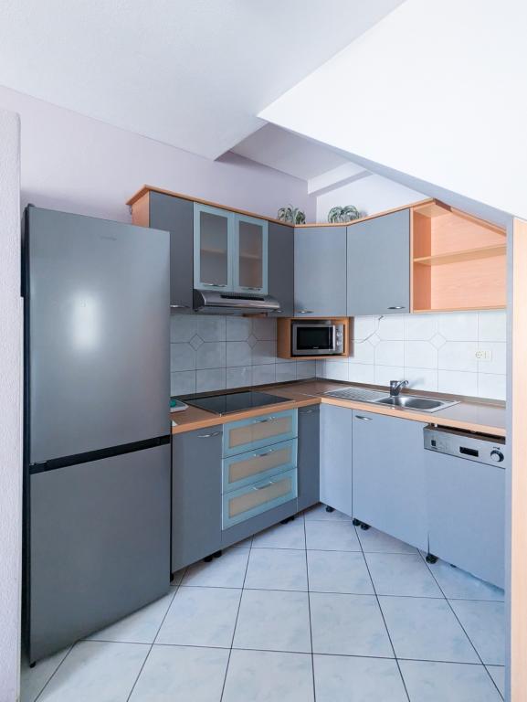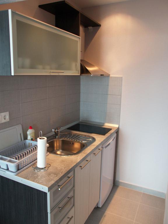 Die Wohnung ist komplett ausgestattet und liegt etwa eineinhalb bis zwei Gehminuten vom Strand entfernt.