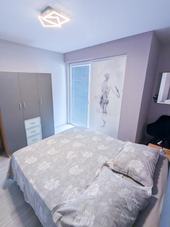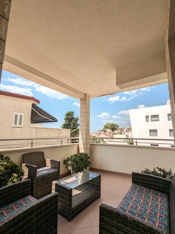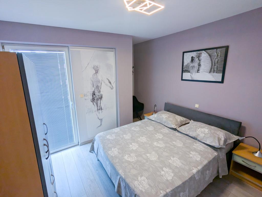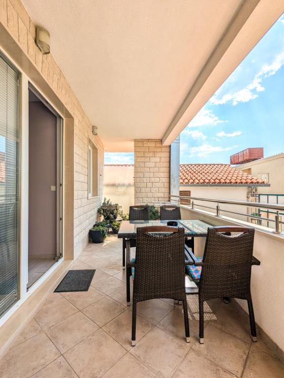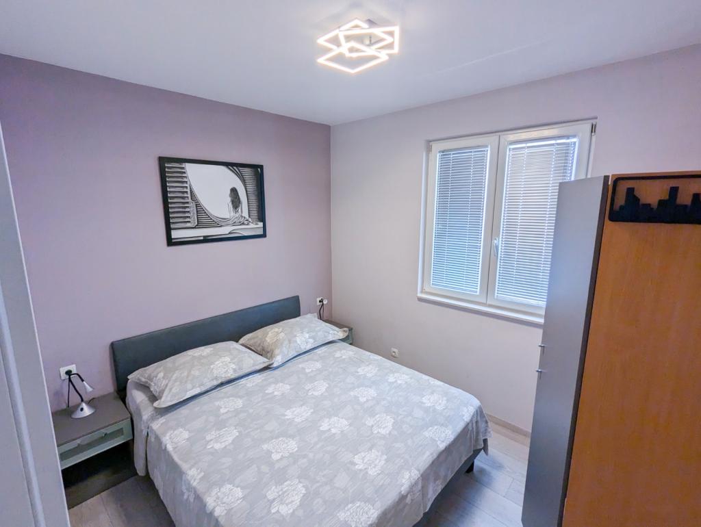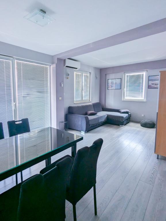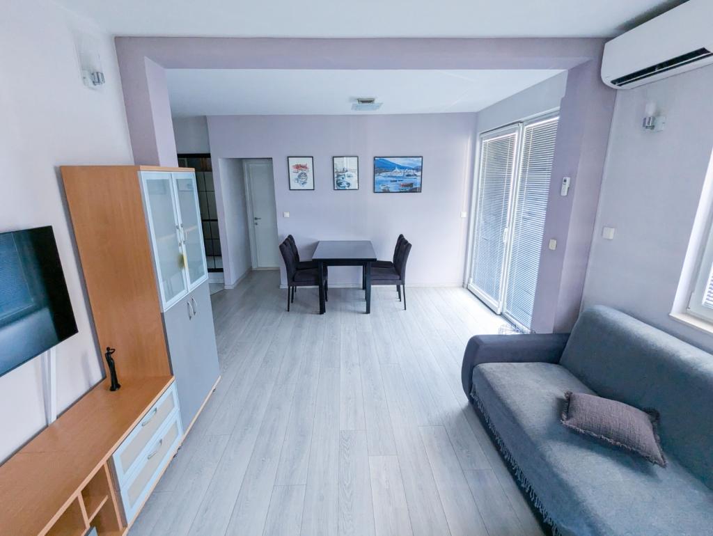 Die Wohnung ist komplett ausgestattet und liegt etwa eineinhalb bis zwei Gehminuten vom Strand entfernt.