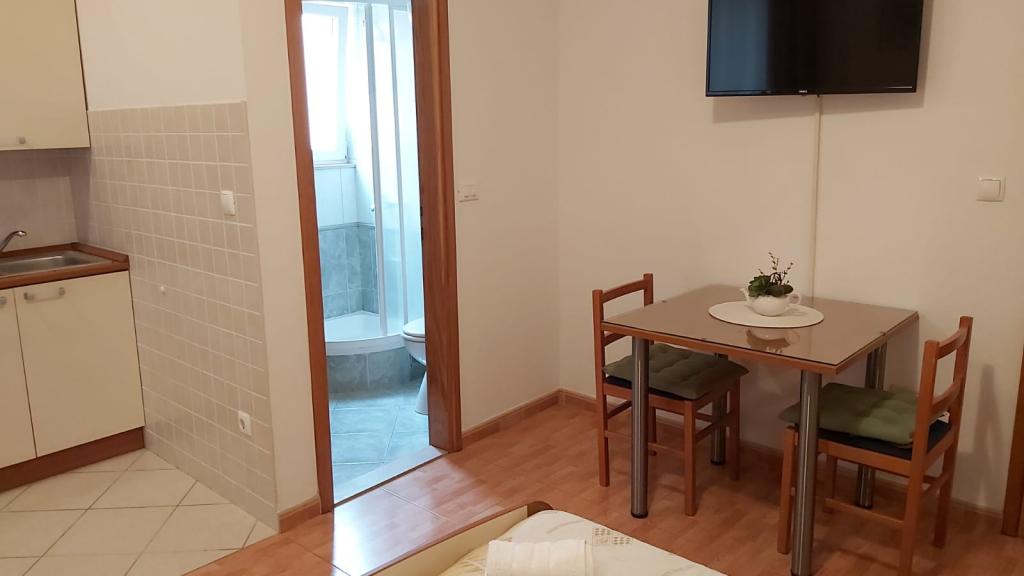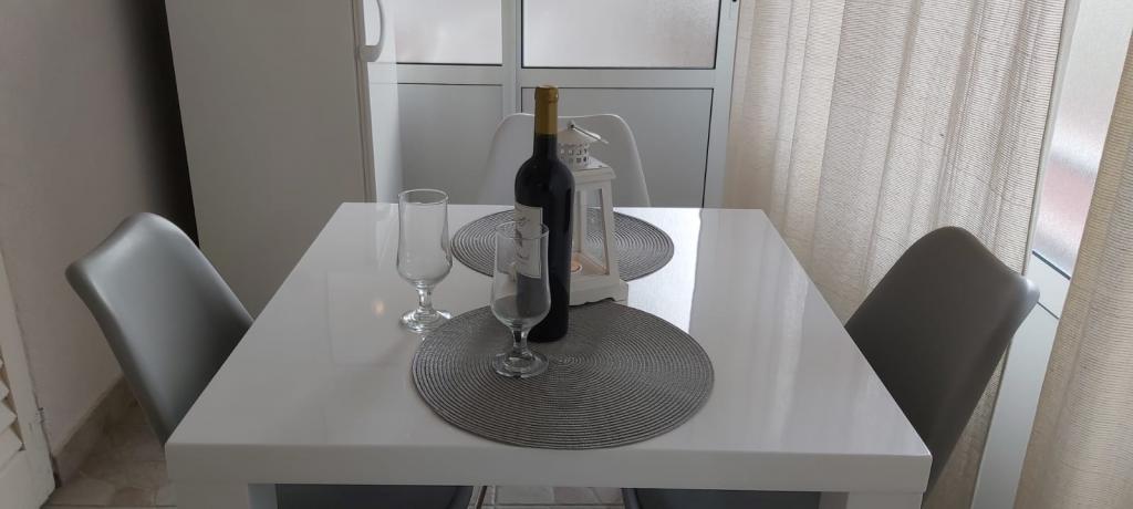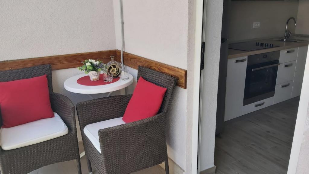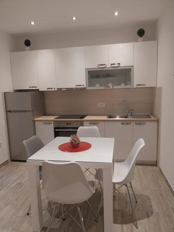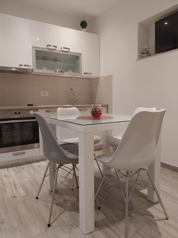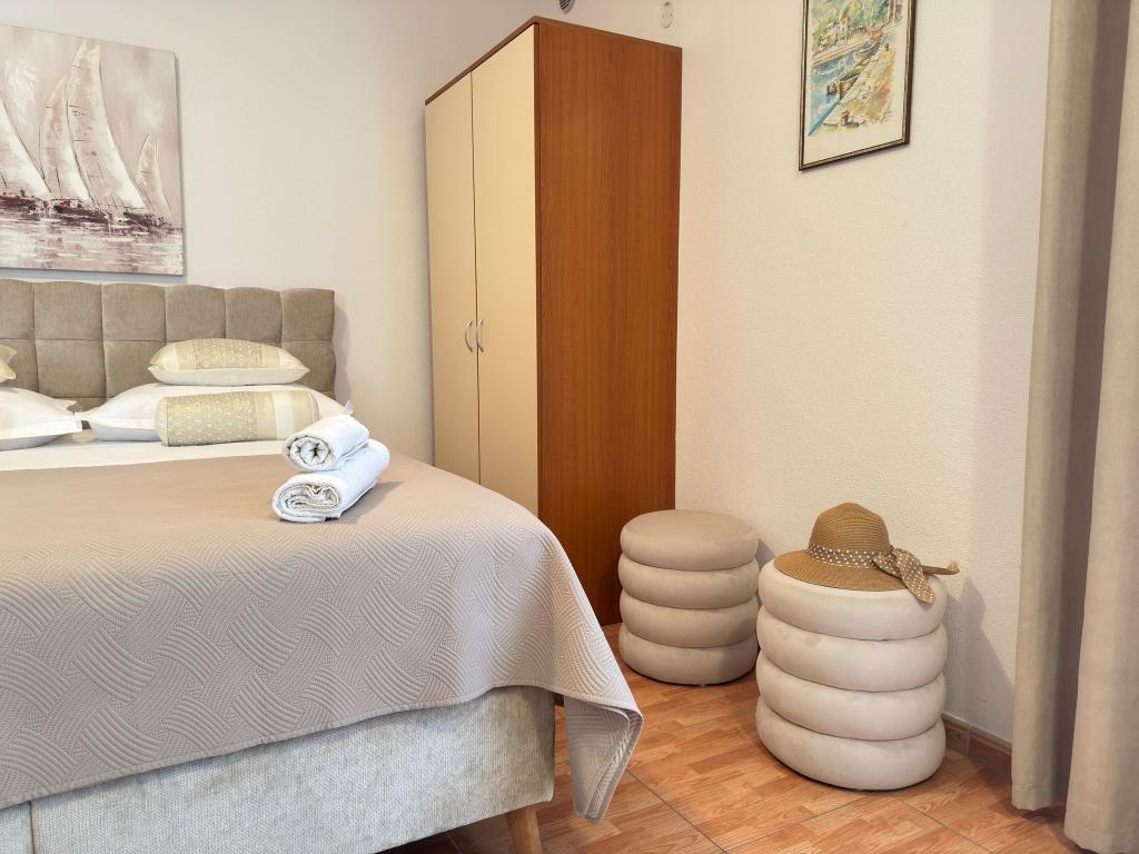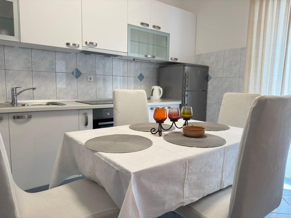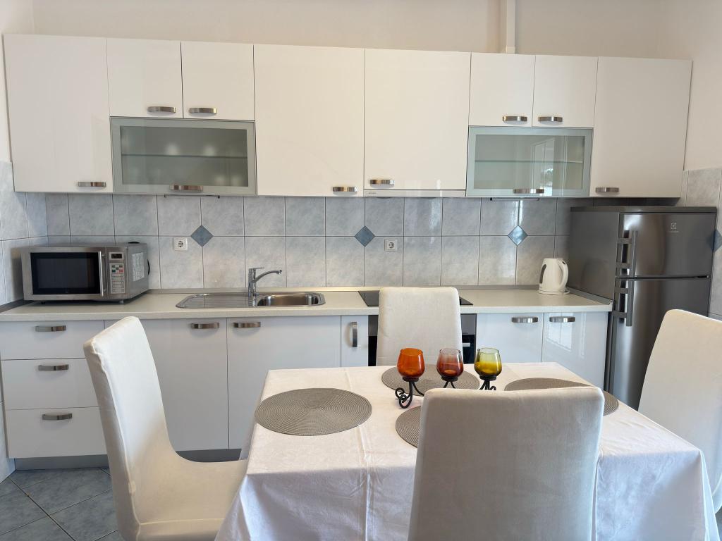 Sehr schöne Wohnung mit Meerblick. Große Küche mit Ausstattung. Große Terrasse. In der Nähe des Hafens und des Strandes, 5 Minuten zu Fuß. In der Nähe gibt es einen Arzt, eine Bäckerei und ein Geschäft. Sehr nette und hilfsbereite Besitzer. Sie kamen um 5 Uhr morgens zu uns, um sich zu verabschieden. Die Wohnung verfügt über Parkplätze. Ich empfehle