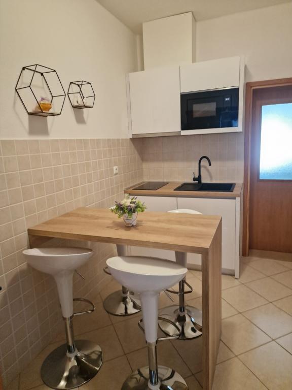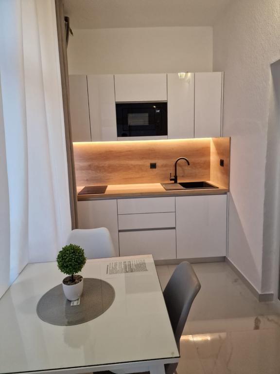 Wir befinden uns im Zentrum von Baška Voda, aber in einer ruhigen Gegend abseits der sommerlichen Menschenmassen. Wir bieten Ihnen komfortabel eingerichtete Apartments, modern eingerichtet und komplett ausgestattet für Ihren unbeschwerten und angenehmen Urlaub. Wir betonen die Nähe des Meeres und des Strandes, der mit der Blauen Flagge ausgezeichnet ist!