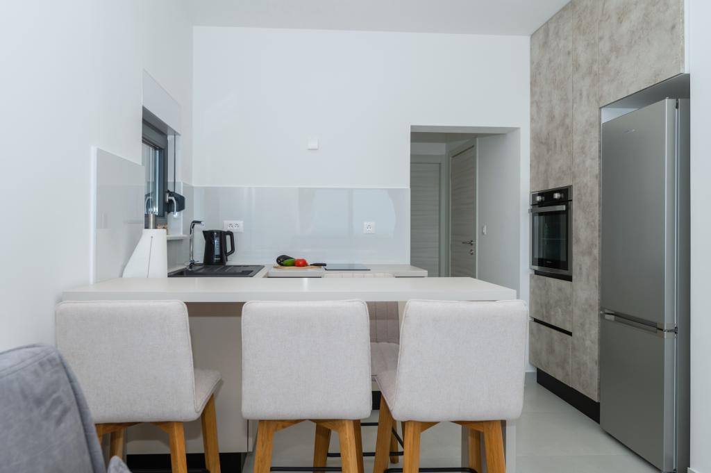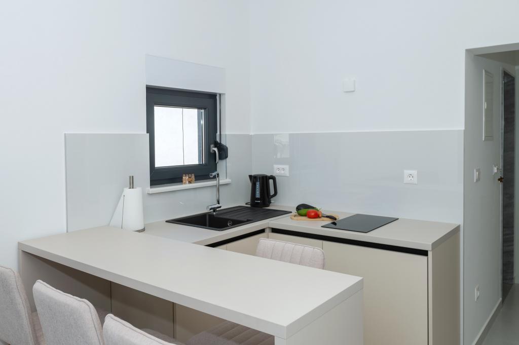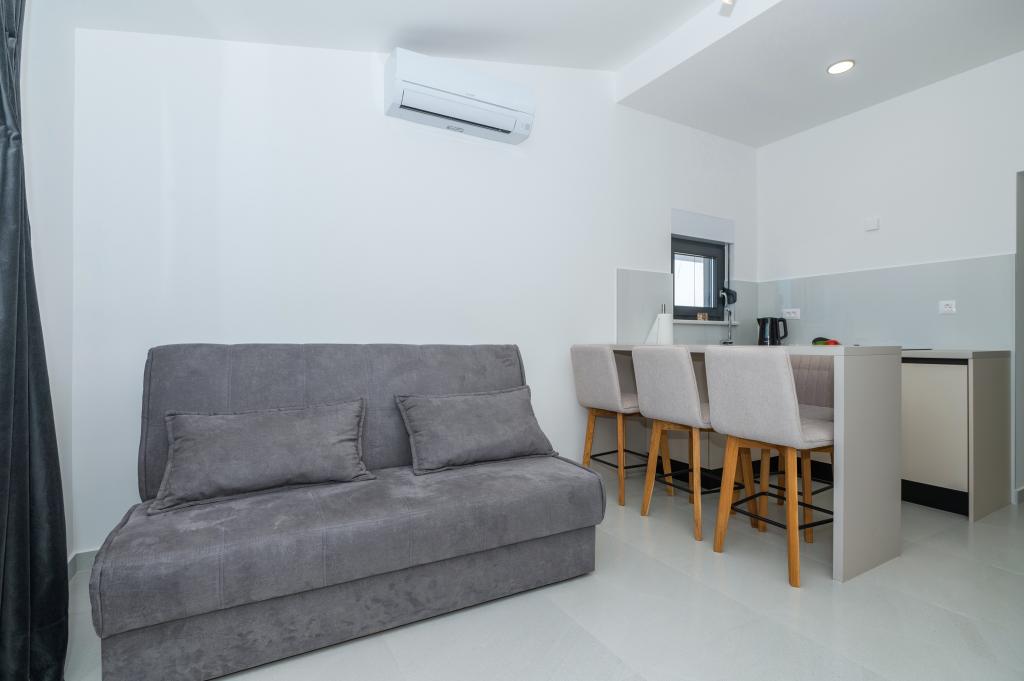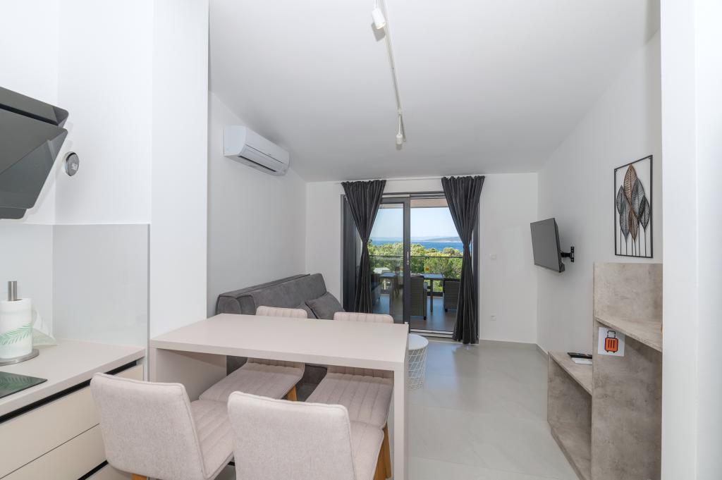 Die Apartments sind modern ausgestattet und verfügen über alle notwendigen Annehmlichkeiten für einen angenehmen Aufenthalt. Paare oder Familien werden den Komfort der Wohnung gleichermaßen genießen. Die Terrasse mit Blick auf das Meer ist mit Sitzmöbeln ausgestattet. Die Anlage befindet sich in der Nähe einer Bäckerei und eines Supermarkts und verfügt über private kostenlose Parkplätze. Die Entfernung zum Meer, zum Strand und allen Einrichtungen beträgt 500 m. Unsere Gäste sind mit dem Angebot und der Lage der Apartments stets zufrieden! Willkommen!