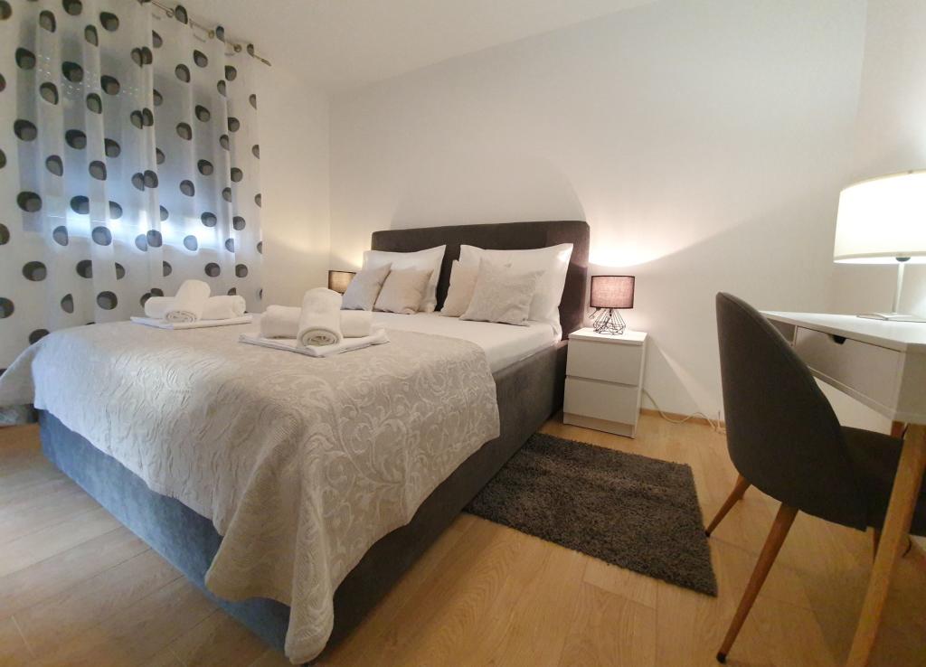 Die Villa La Vita ist ein neues und modernes Gebäude für eine komfortable Unterkunft der Gäste. Alle unsere Apartments sind komplett und modern ausgestattet, um dem Gast ein maximales Urlaubsvergnügen zu bieten. Wir vermieten 6 Apartments: 2 große Apartments 4 + 2 Personen, dann 3 kleinere Apartments 2 + 2 Personen. Die Apartments im 1. und 2. Stock bieten einen wunderschönen Meerblick, der 300 m oder wenige Gehminuten entfernt liegt. Der Strand in Baška Voda ist weithin bekannt für seine Schönheit, weshalb er mehrfach mit einer blauen Flagge gekrönt wurde. Es gibt auch einen großen Swimmingpool und einen Pavillon im Innenhof der Villa. Für alle weiteren Anfragen und Informationen stehen wir Ihnen zur Verfügung.