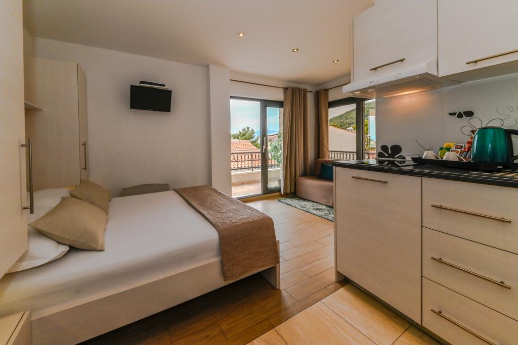 Wir befinden uns im Zentrum von Baska Voda gelegen, aber in einer ruhigen Gegend von unkultivierten Sommer Menschenmassen. Wir bieten Ihnen eine angenehme Umgebungstemperatur Studio-Apartments sind modern eingerichtet und komplett ausgestattet für Ihren unbeschwerten und angenehmen Urlaub. Wir unterstreichen die Nähe zum Meer und Strand, die mit der Blauen Flagge rühmt!