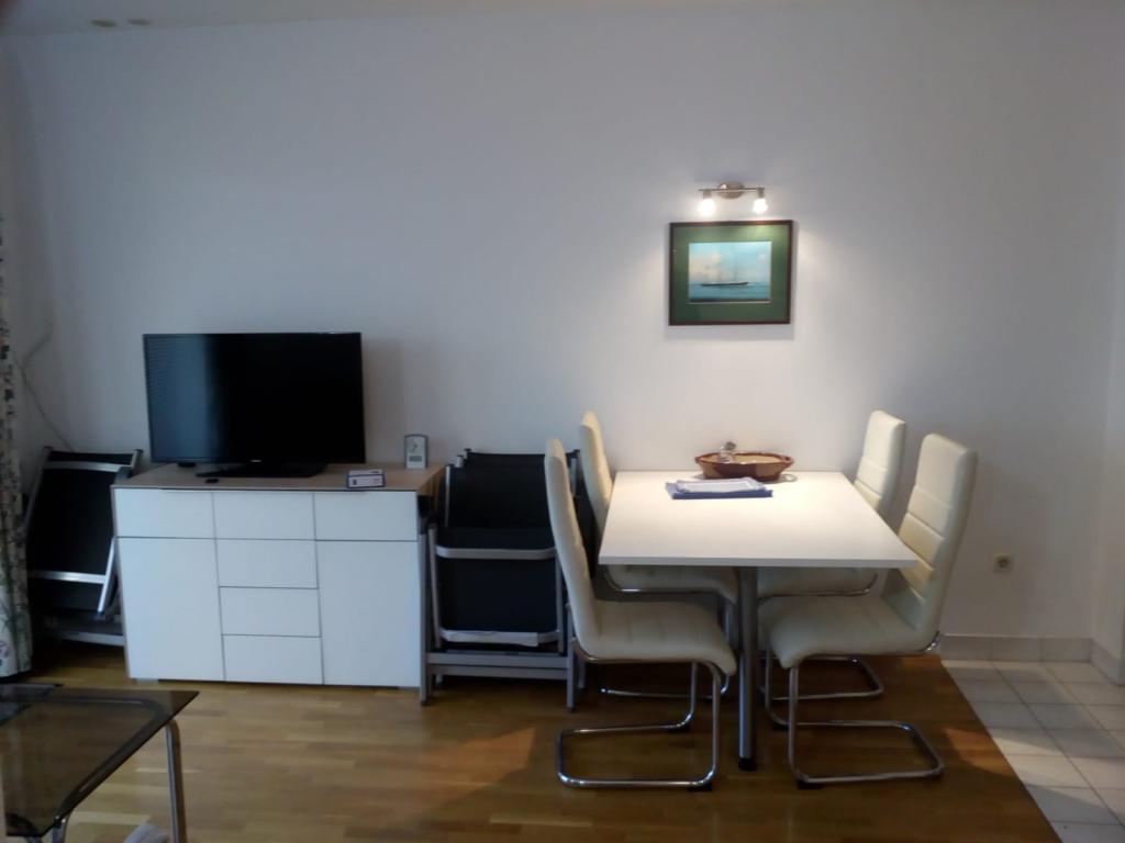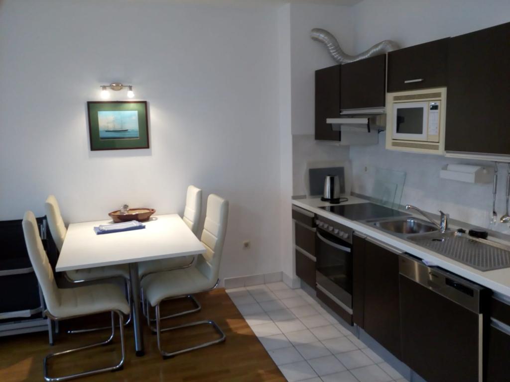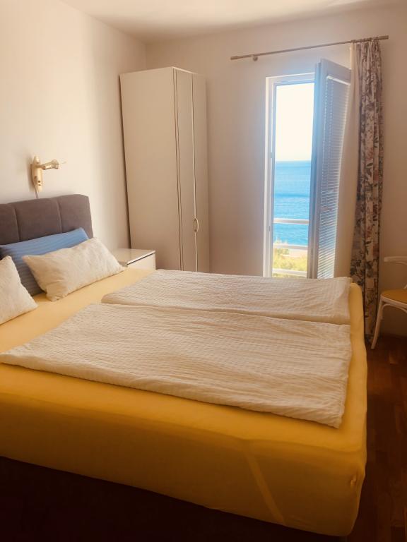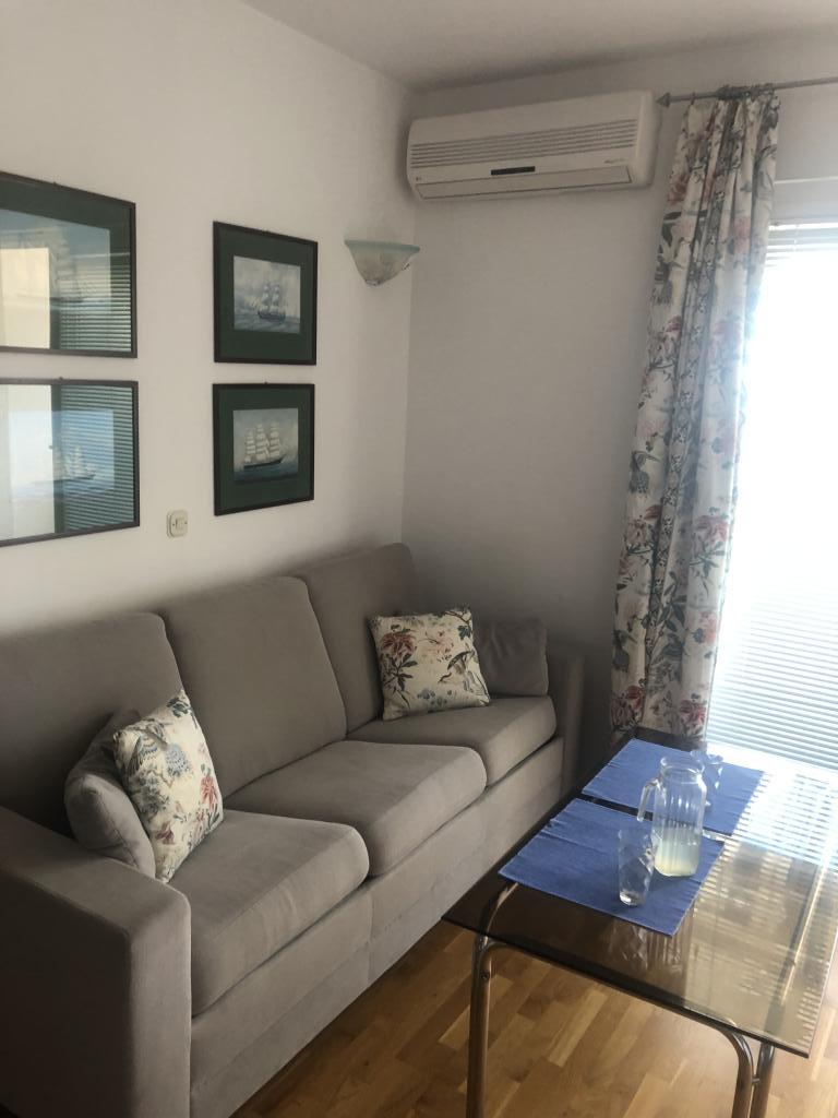 Die Wohnung ist 45m groß und liegt im zweiten Stock und besteht aus einem Schlafzimmer mit wunderschönem Meerblick, einem Wohnzimmer mit einem Schlafsofa, das sich sofort in ein bequemes Bett für zwei Personen verwandeln lässt, einer voll ausgestatteten Küche mit Mikrowelle, Geschirrspüler, Backofen, Kaffeemaschine, Toaster, Wasserkocher, Badezimmer mit Dusche, Waschmaschine und Föhn, Handtücher, Sat-TV, Klimaanlage, W-LAN, Safe, Balkon mit Meerblick mit Markise, wir haben einen Garagenplatz zum Abstellen Ihres Autos, mit der Möglichkeit, Fahrräder zu nutzen.