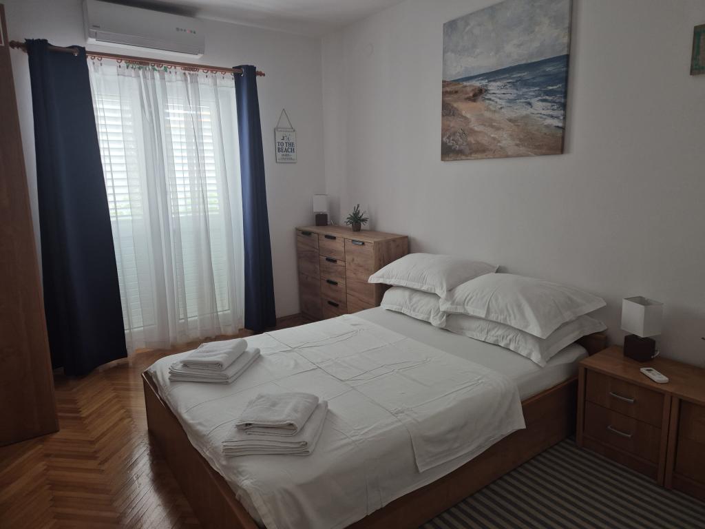 Große Wohnung in einer ruhigen Gegend von Baska Voda, komplett ausgestattet. Die Anlage befindet sich 2 Gehminuten vom Strand und weniger als 5 Minuten vom Zentrum entfernt. Großer Balkon mit Meerblick. Parkplatz vor dem Haus für zwei Autos.
