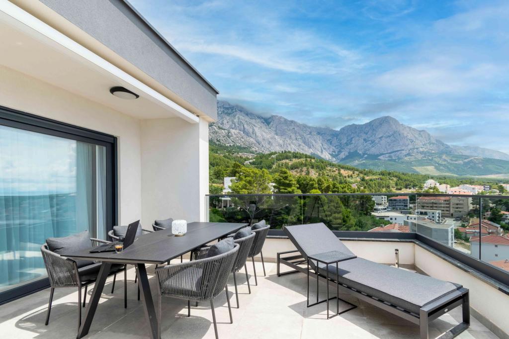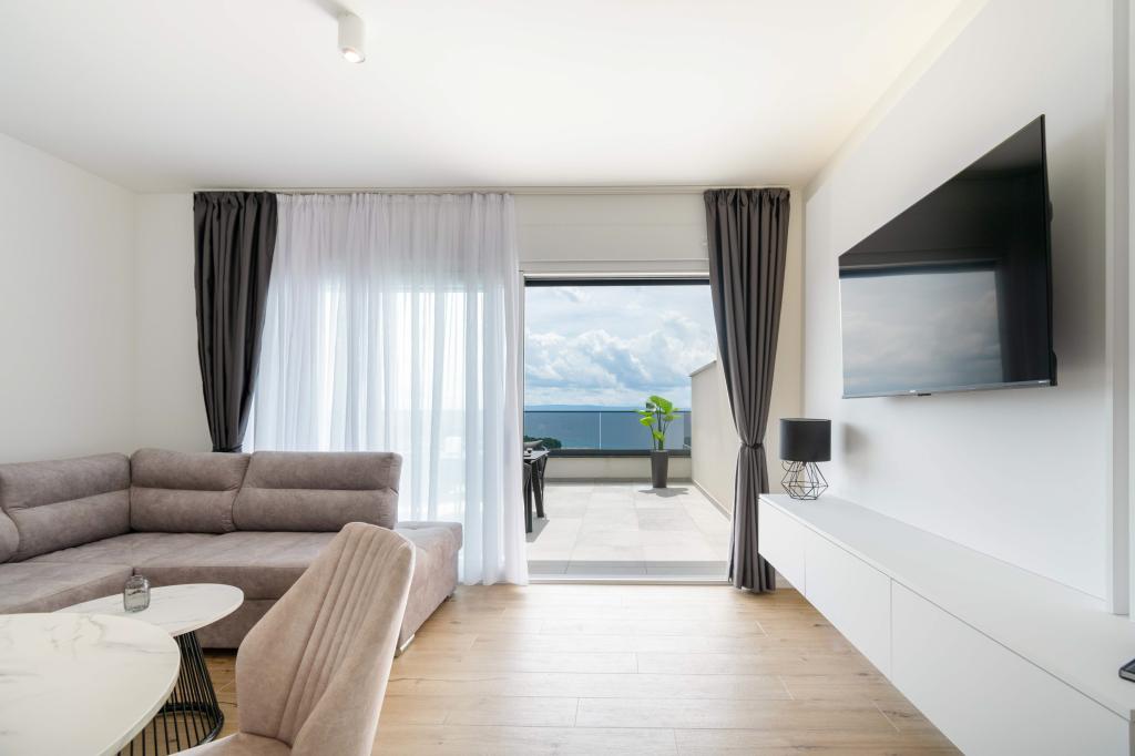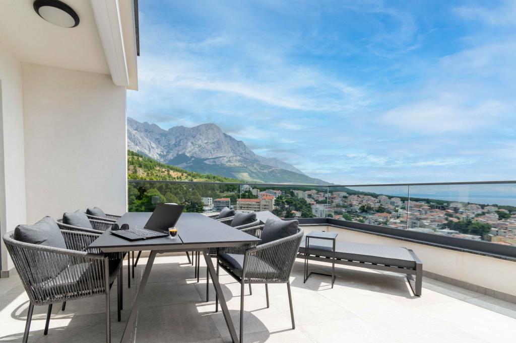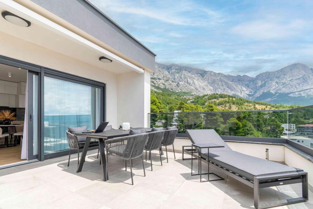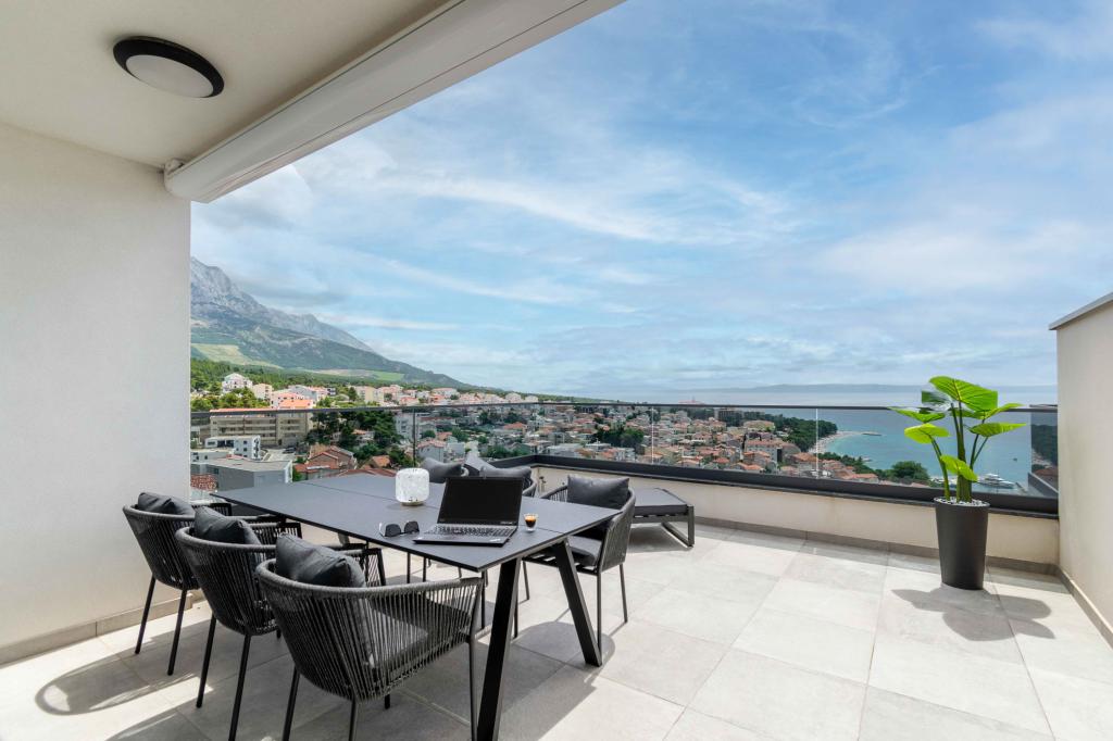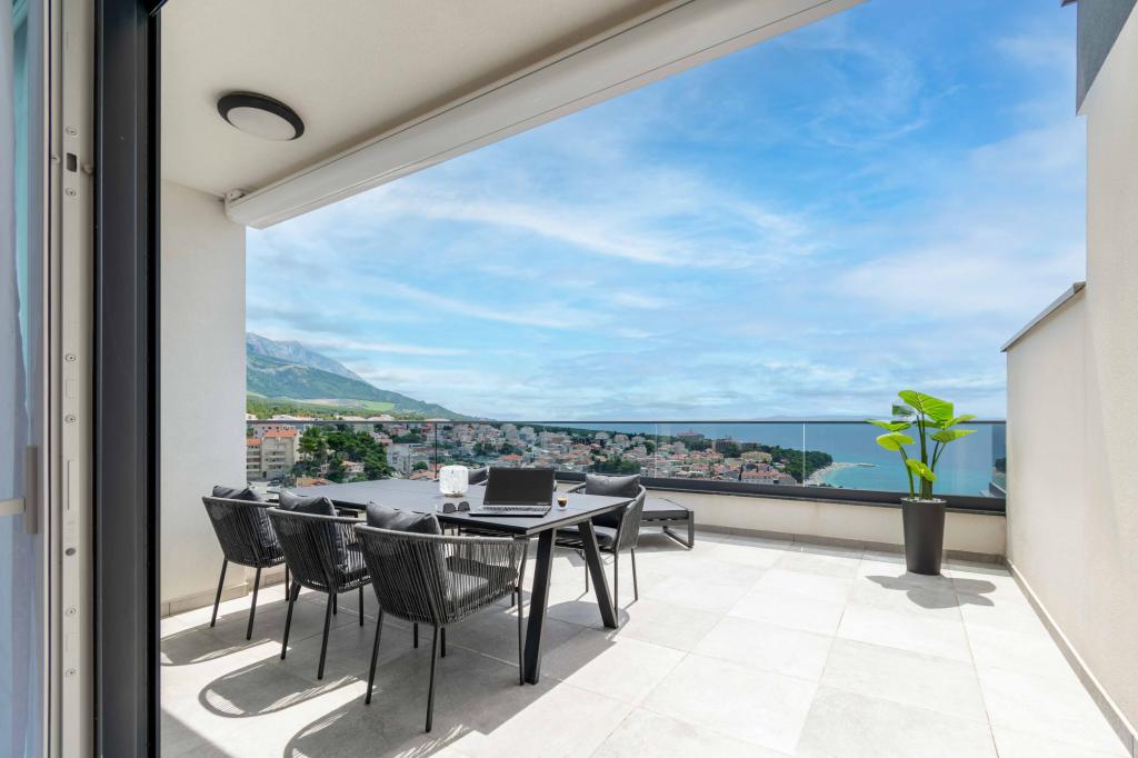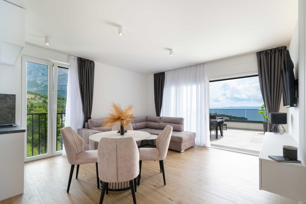 Das Apartment Sky bietet eine besondere Unterkunft mit einem unvergesslichen Blick auf das Meer, Brač und Baška Voda. Dieses moderne Apartment besteht aus 1 Schlafzimmer, einem Wohnzimmer mit einem Schlafsofa und einer großen Terrasse mit Möbeln und Liegestühlen. Hinter dem Haus steht Ihnen ein privater Parkplatz zur Verfügung.