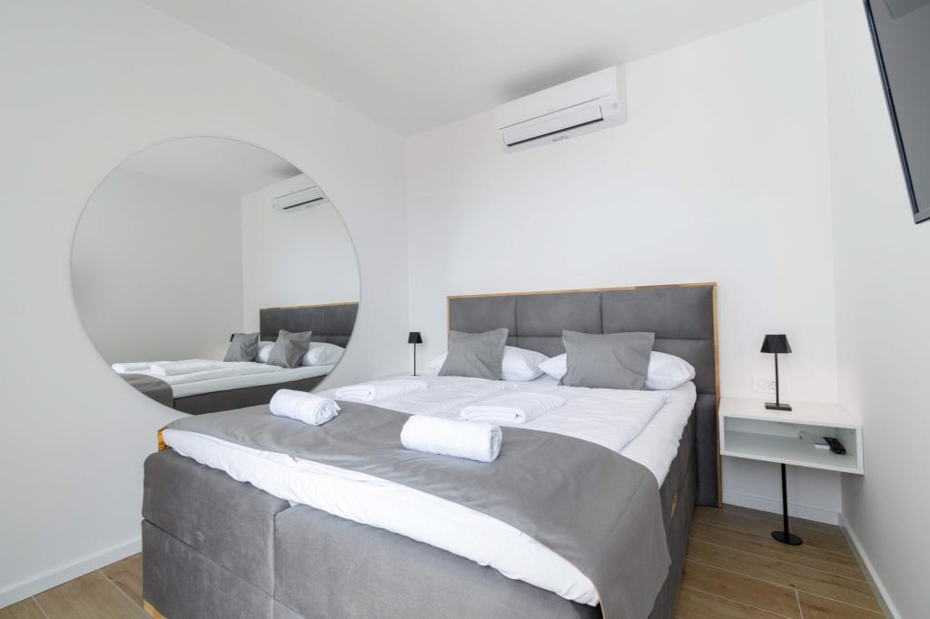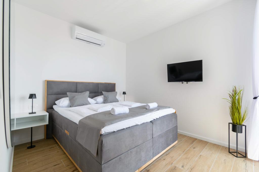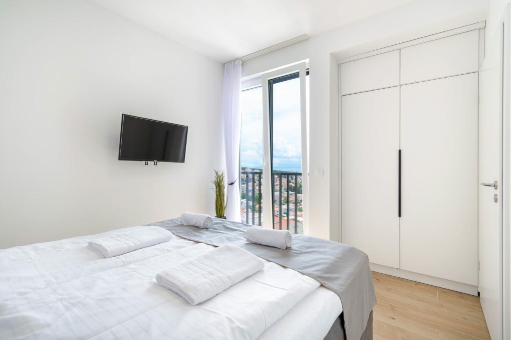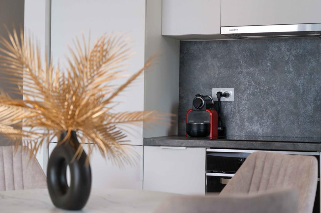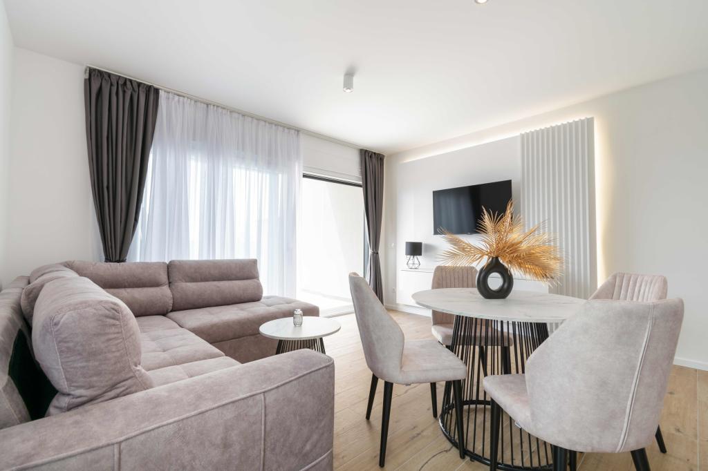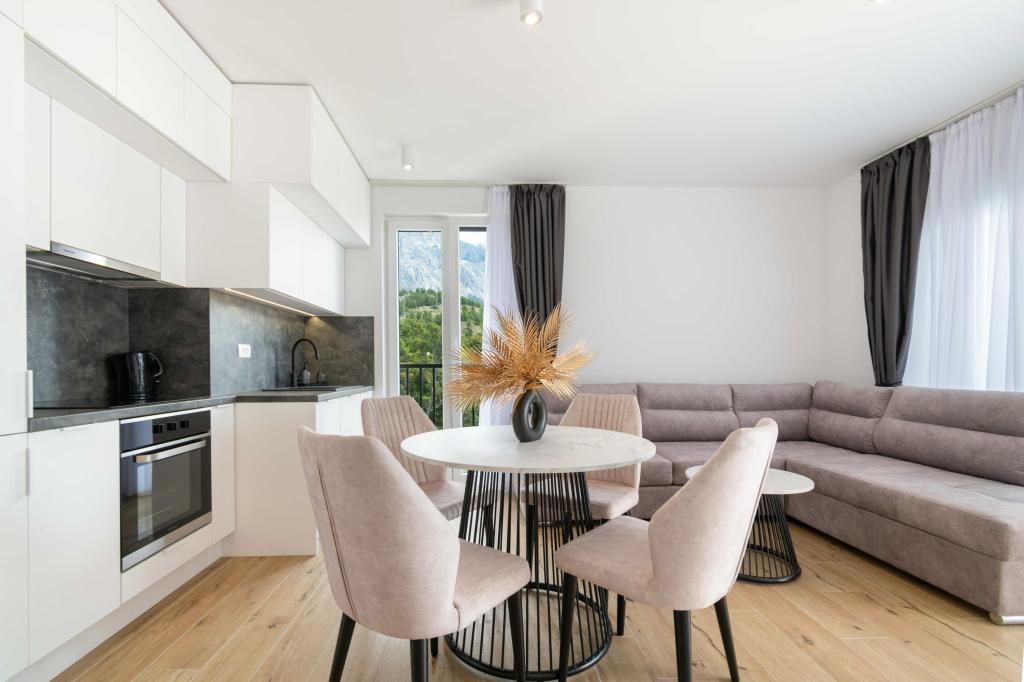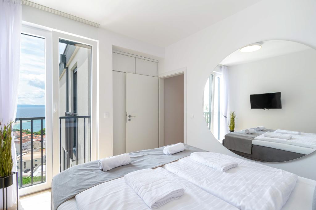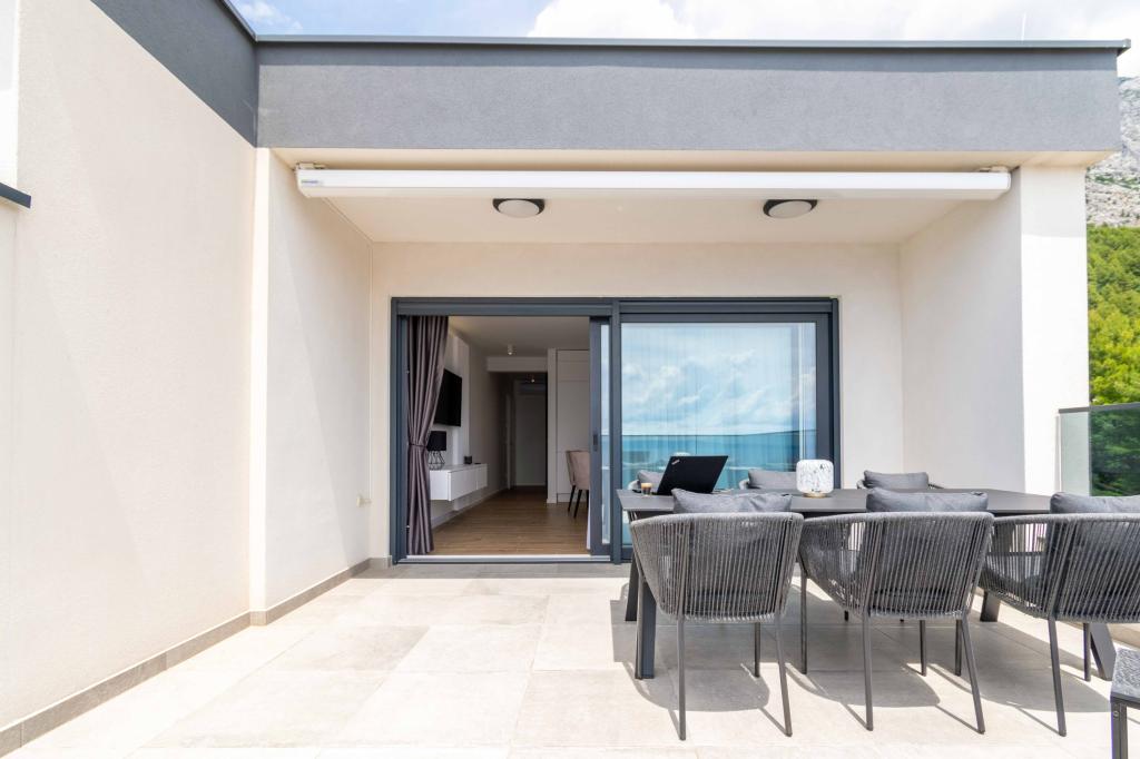 Das Apartment Sky bietet eine besondere Unterkunft mit einem unvergesslichen Blick auf das Meer, Brač und Baška Voda. Dieses moderne Apartment besteht aus 1 Schlafzimmer, einem Wohnzimmer mit einem Schlafsofa und einer großen Terrasse mit Möbeln und Liegestühlen. Hinter dem Haus steht Ihnen ein privater Parkplatz zur Verfügung.