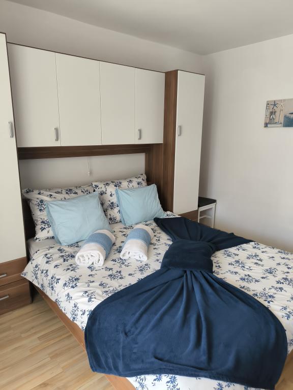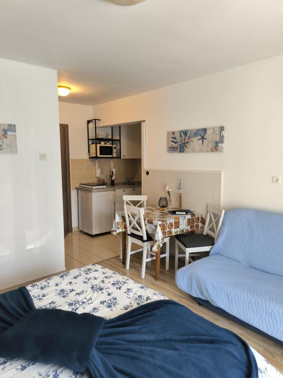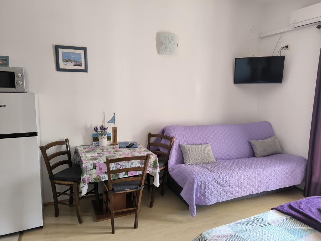 Schön und modern eingerichtete und voll ausgestattete Studio-Apartments und Apartments in einem Familienhaus in einem ruhigen Teil von Baška. Alle Wohneinheiten sind mit Klimaanlage, Wi-Fi, TV-SAT, Küche mit Kühlschrank und Mikrowelle ausgestattet. Möglichkeit für ein Zustellbett in allen Wohnungen. Gesicherter Parkplatz neben dem Haus. Der Strand ist ganz in der Nähe, nur 5 Gehminuten entfernt, ideal für Kinder zum Spielen am Meer. Die Altstadt erreichen Sie in 15 Minuten bequem zu Fuß entlang einer schönen Promenade.