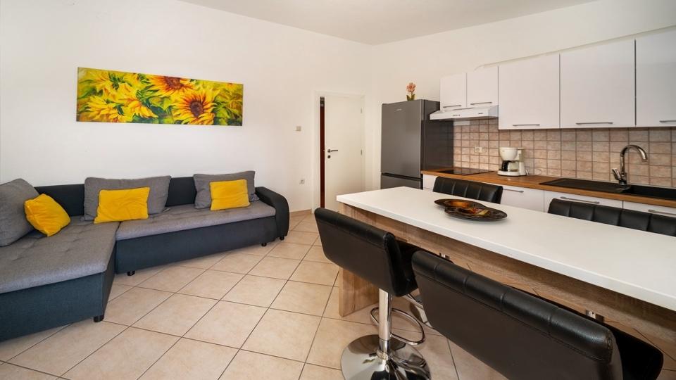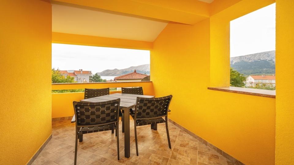 Apartment in einem ruhigen Teil von Baška auf der Insel Krk, die Anlage befindet sich 400 Meter vom Strand und 200 Meter vom Zentrum entfernt. Es hat eine Terrasse mit Blick auf das Meer. Das WLAN ist im Mietpreis enthalten. Überdachter Parkplatz und Klimaanlage.