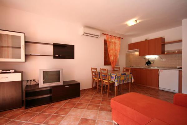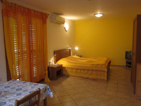 In dem Wohnhaus gibt es 4 Wohnungen. Von diesen sind zwei große Suiten für insgesamt 4 Personen mit je 42 m2. In der Rückseite des Hauses gibt es 2 Studio-Apartments für 2 Personen. In dem Gebäude gibt es Parkplätze mit Parkplatz für jede Wohnung. Alle Wohnungen sind klimatisiert und verfügen über Sat-TV. Wohnung Gebäude ist nur 10 Gehminuten vom berühmten Strand gelegen (1800 Meter lang, die besonders für Kinder geeignet ist), und 10 Minuten zu Fuß vom Stadtzentrum entfernt. In der Nähe gibt es zwei Geschäfte in einer Entfernung von 100 Metern, und ein sehr gutes Restaurant. Die Reinigung der Zimmer ist im Preis inbegriffen, Bettwäsche wird alle 7 Tage gewechselt.