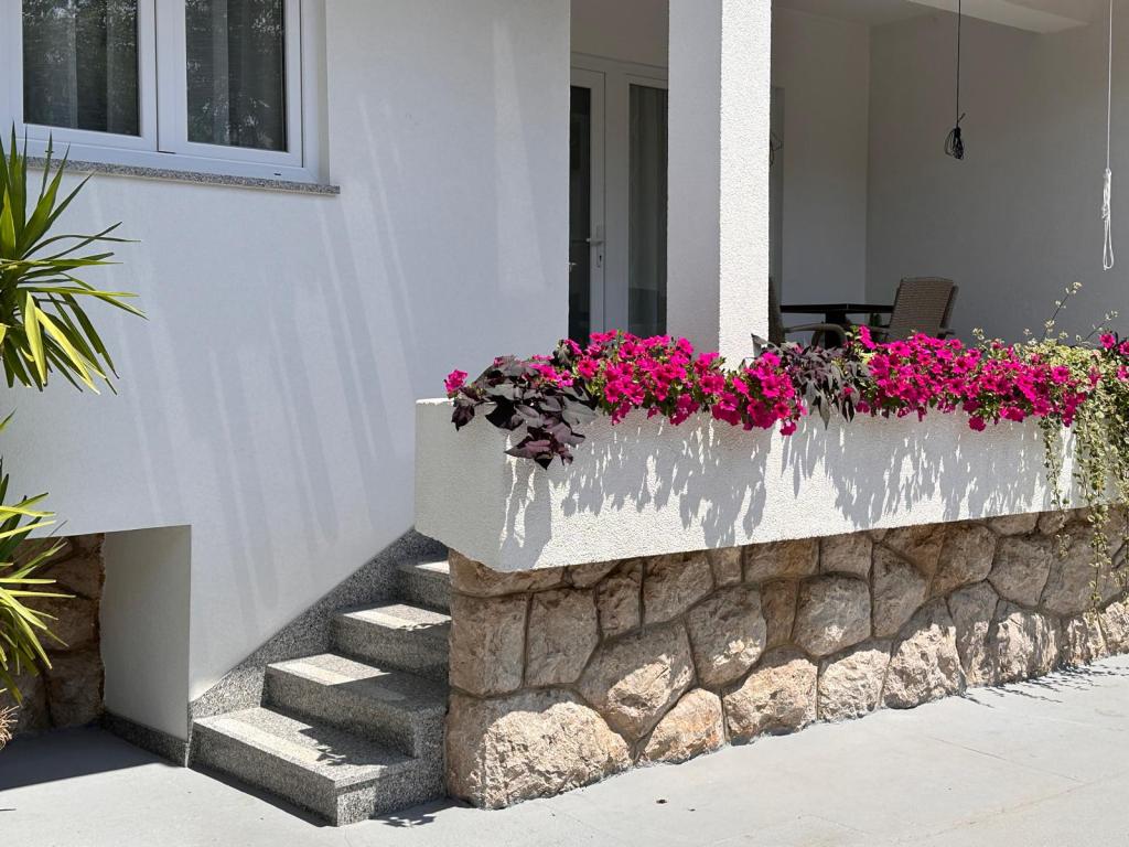 Die Apartments Fioribell befinden sich in Baška in einem ruhigen Teil, umgeben von mediterraner Vegetation, in idealer Entfernung von nur 50 Metern vom Vela plaža, dem berühmtesten Strand der Insel, zu dem Sie nur im Badeanzug und mit einem Handtuch gehen können. Das Zentrum ist 100-200 m entfernt, wo Sie alle notwendigen Annehmlichkeiten finden. Unsere Spezialität ist, dass wir uns in einem flachen Teil von Baška befinden, in der Nähe aller Einrichtungen und mit einer großen umzäunten Gartenterrasse, auf der Kinder spielen oder den Schatten genießen können. Auf der Terrasse steht allen Gästen ein Grill zur Verfügung. Wir haben eine weitere Wohnung GRUH, gelegen in einem anderen Haus, 300 Meter vom Strand, 250-300 m von Geschäften und Restaurants, 250 m vom Zentrum entfernt. Alle Wohnungen haben separate Eingänge, eine Terrasse oder einen Balkon und sind komplett ausgestattet. Den Gästen stehen kostenfreie Parkplätze vor dem Haus zur Verfügung. Wir bieten unseren Gästen die Möglichkeit, in unserem Familienunternehmen RUBY ein Boot zu mieten und unvergessliche Momente bei der Erkundung der wunderschönen Strände und Städte in der Umgebung zu erleben. Liebe Gäste, Sie werden bei uns einen erholsamen Urlaub verbringen.