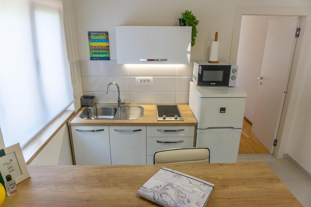 Wir bieten unseren Gästen zusätzliche Annehmlichkeiten für einen komfortablen Aufenthalt: Küchenausstattung: Jedes Apartment verfügt über einen Kühlschrank mit Gefrierfach, Herd, Wasserkocher, Filterkaffeemaschine, Toaster, Mikrowelle und Handmixer. Geschirrspüler: Apartment 2 ist mit einer Mini-Spülmaschine ausgestattet (60 cm breit, Tischgerät auf der Küchenarbeitsplatte). Für Familien: Kinderbett und Hochstuhl sind auf Anfrage erhältlich. Grill: Die Nutzung des Gemeinschaftsgrills im Hof ist nach vorheriger Anmeldung möglich. Sonstiges: Bügeleisen und Bügelbrett sind auf Anfrage verfügbar.