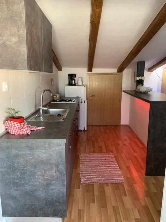 Objekt befindet sich im Zentrum, 3 min zu Fuß zur Hauptstraße, 5 min zum Strand, Geschäfte, Bäckereien, Metzgereien, Restaurants. Zentrumsnah und doch ruhig gelegen mit Parkplatz, WLAN, Klimaanlage. Die Gäste können unseren schönsten Kiesstrand an der Adria genießen, die Promenaden am Meer, aber auch Wandern (ca. 30 markierte Wanderwege von 2-12 km), da Baska in einem Tal liegt, herum sind interessant, felsig, Hügel, reich in Heilkräutern wie Salbei, Immortelle. Besonders schön sind die Hügel im Juni, wenn der Wacholder blüht und sein berauschender Duft sich in der Luft verbreitet. Radsportbegeisterte werden es nicht bereuen, diese Gegend zu besuchen. Für sie gibt es auch markierte Wege und jeden Tag gibt es Ausflugsboote, die Touristen zu den Nachbarinseln (Goli otok, Grgur, Rab) bringen. Es wird also nie langweilig. Wer Baška einmal besucht, kommt immer wieder und vergleicht jeden anderen Ort damit. Baška ist einen Besuch wert. Die Wohnungen sind einfach, zweckmäßig und sauber. Wir stehen Ihnen für alle Informationen zur Verfügung und werden immer helfen.