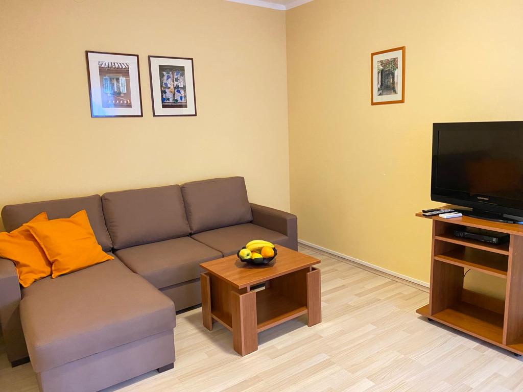 Unser Haus liegt in einer ruhigen Straße, nur 350 Meter vom Meer und Strand entfernt. Die Apartments sind komplett ausgestattet und verfügen über Sat-TV, WLAN, Klimaanlage und einen sicheren Parkplatz im Hof. Im Garten, im Schatten von Olivenbäumen, steht unseren Gästen ein Grill zur Verfügung.