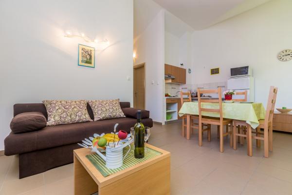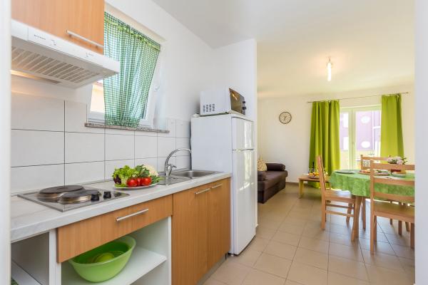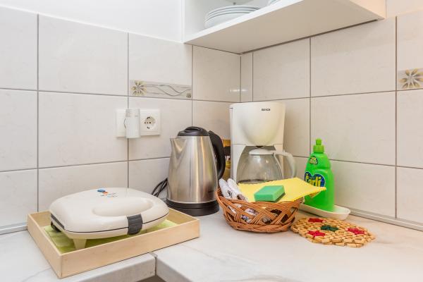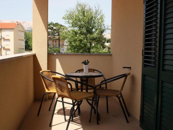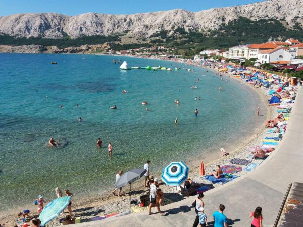 Die 4-Sterne-Villa Mirica bietet vier moderne, voll ausgestattete Apartments (2 Schlafzimmer und 2 Bäder). Die Apartments verfügen über eine Wohnfläche von 40 m² und eine 10 m² große, überdachte Terrasse. Sie befinden sich in ruhiger Lage in Baška mit Blick auf den Garten und eine ruhige Straße. Der Strand Vela und alle Annehmlichkeiten sind nur 5 Gehminuten entfernt. Die schönen Apartments der Villa Mirica bieten ein Schlafzimmer mit Doppelbett, ein Badezimmer mit Dusche, Föhn, Waschmaschine und Waschmittel, eine Küche mit Geschirrspüler, Kühlschrank und Föhn, ein Wohnzimmer mit Schlafsofa und 5 cm dicker Matratzenauflage, Bügelbrett und Bügeleisen, Toaster, Wasserkocher, Mikrowelle und Heißluftfritteuse. Jedes Apartment bietet Platz für bis zu vier Gäste. Zur modernen Ausstattung gehören kostenfreies WLAN, kostenfreie, solarbedeckte Parkplätze, Klimaanlage, private Terrasse, TV, Sat-TV, Safe, Bettwäsche und Handtücher. Alle vier Apartments sind identisch ausgestattet. Auf dem Parkplatz befindet sich eine kostenlose Ladestation für Elektrofahrzeuge – auf Anfrage! Im Garten steht ein Grill zur Verfügung. Ein Babybett und ein Hochstuhl sind auf Anfrage erhältlich.