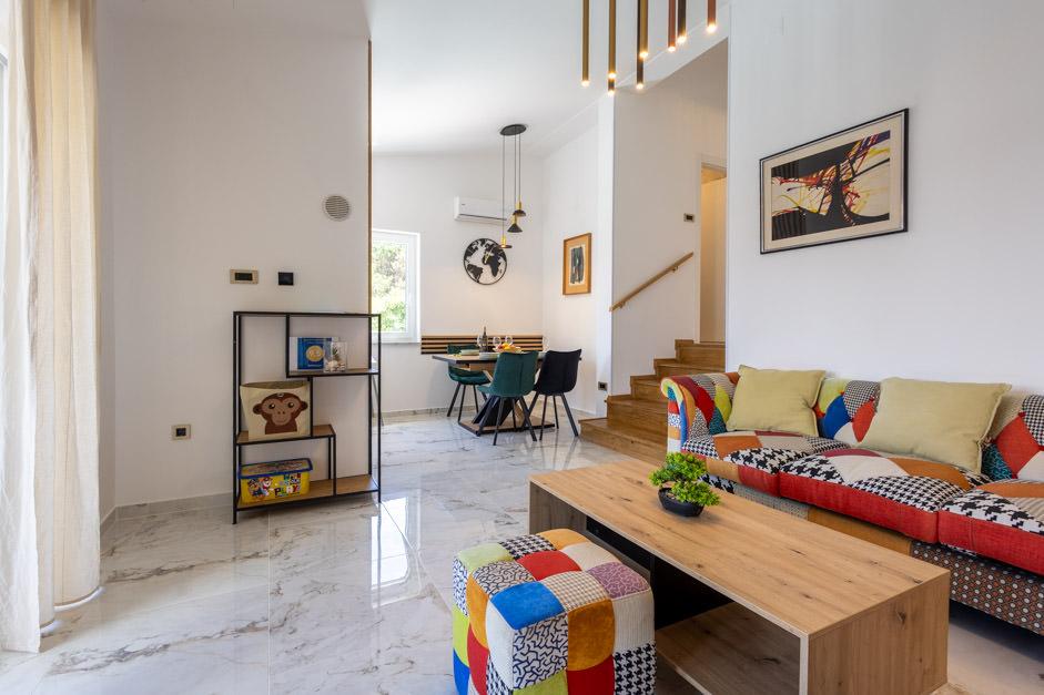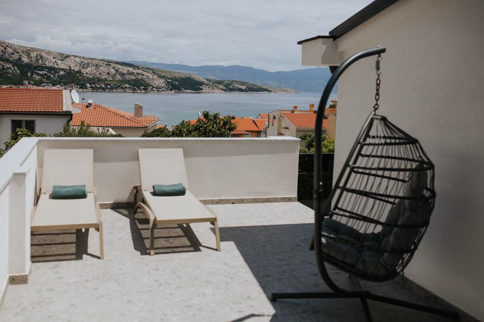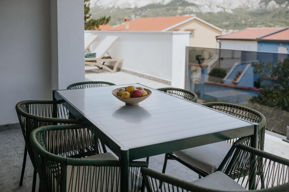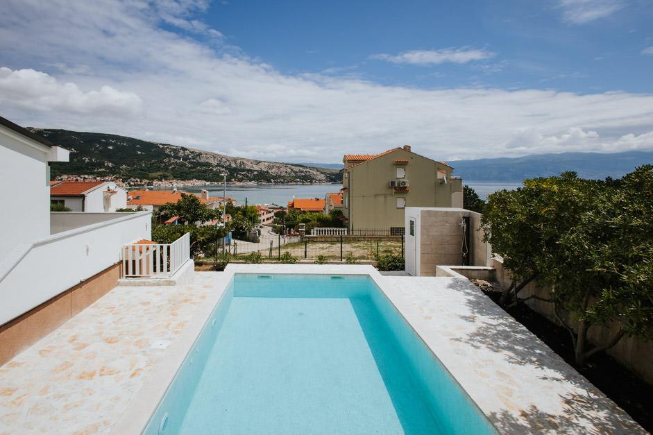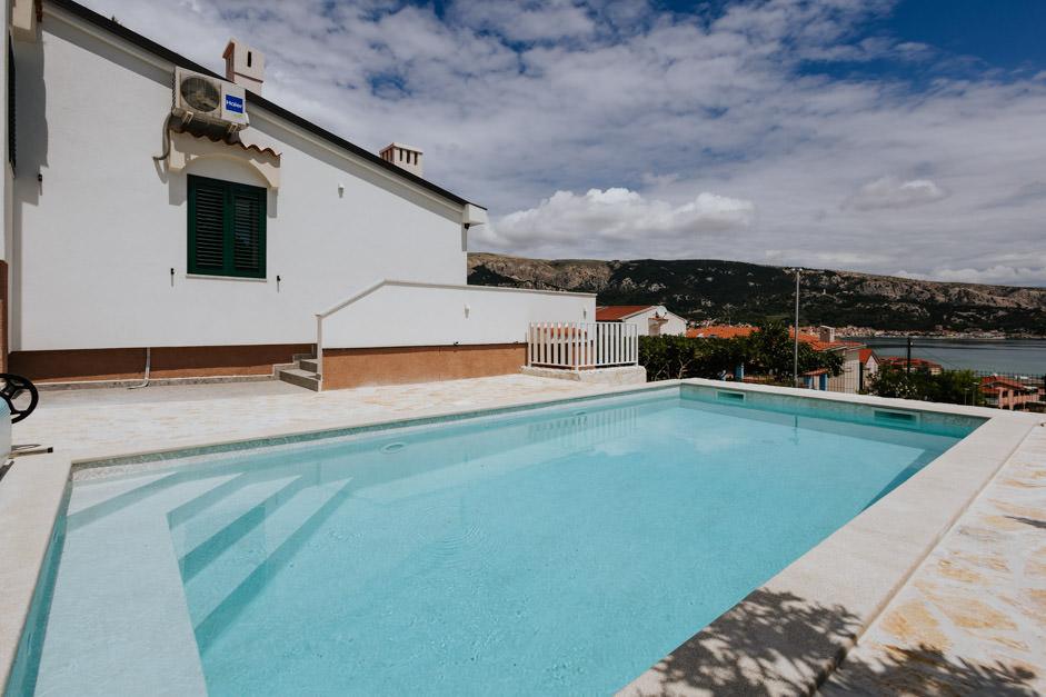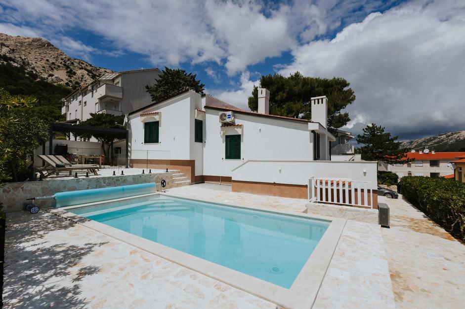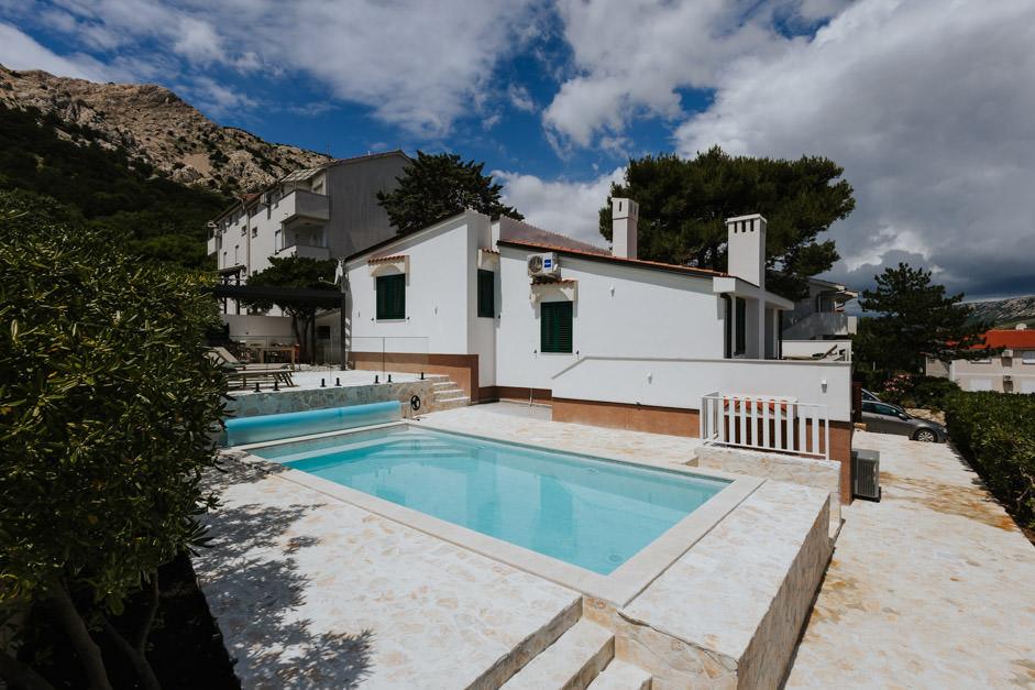 Unsere neu renovierte Villa Zlata befindet sich in Baška, der touristischen Perle der versteckten Bucht der Insel Krk. Das Haus liegt 400 m vom Stadtzentrum und 200 m vom Meer entfernt, dessen Wellen auf den 1800 m langen Kiesstrand treffen. Baška ist ein Ort mit einer reichen Vergangenheit und einem kulturellen Erbe, und nicht weit entfernt, in Jurandvor, befindet sich das berühmte Bašćanska ploča, eines der ältesten schriftlichen Denkmäler in kroatischer Sprache. Die Villa Zlata bietet Unterkunft für 4+2 Personen und ist auch haustierfreundlich, sodass auch Ihr Haustier gerne bei uns untergebracht wird. Es ist komplett dekoriert und ausgestattet und liegt in einer intimen Umgebung eines Pinienwaldes, wo Sie den neu gebauten privaten beheizten Pool genießen können. Das besondere Urlaubsvergnügen können Sie beim Entspannen am Außengrill und im Pavillon spüren, während sich die Kleinsten im sicheren Kinderspielbereich vergnügen können. Für den idealen Abschluss eines Sommertages entspannen Sie auf zwei Terrassen mit dem Duft von Kiefern und einem Blick auf die bezaubernde Bucht, wo sich das sanfte Blau des Meeres und des Himmels mit der Härte des riesigen Velebit in der Ferne vermischt.