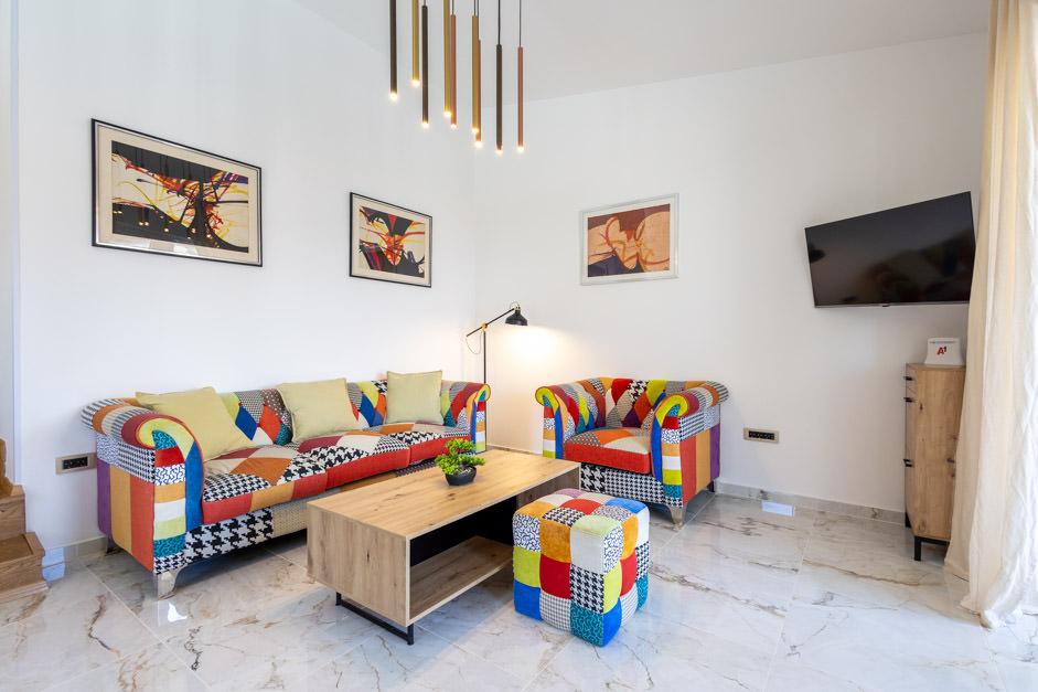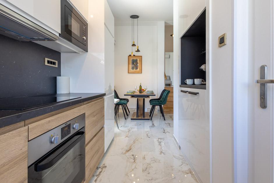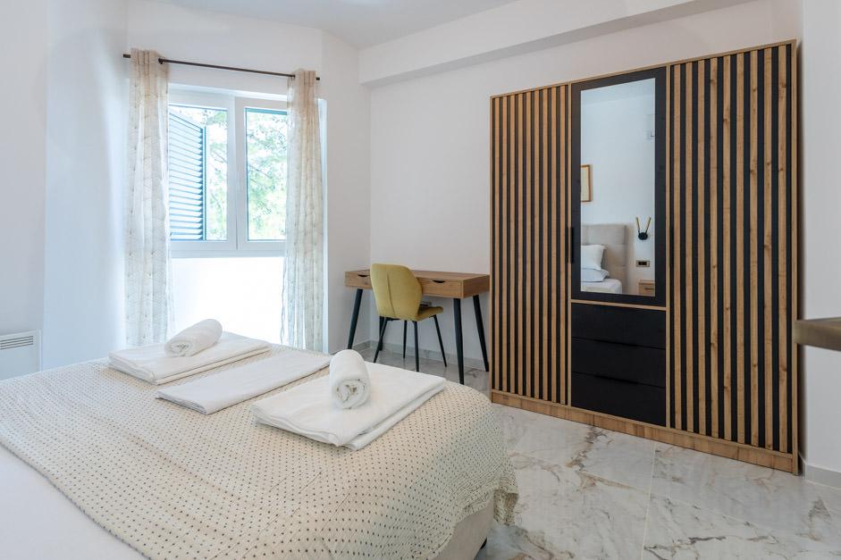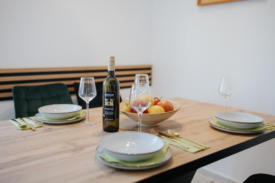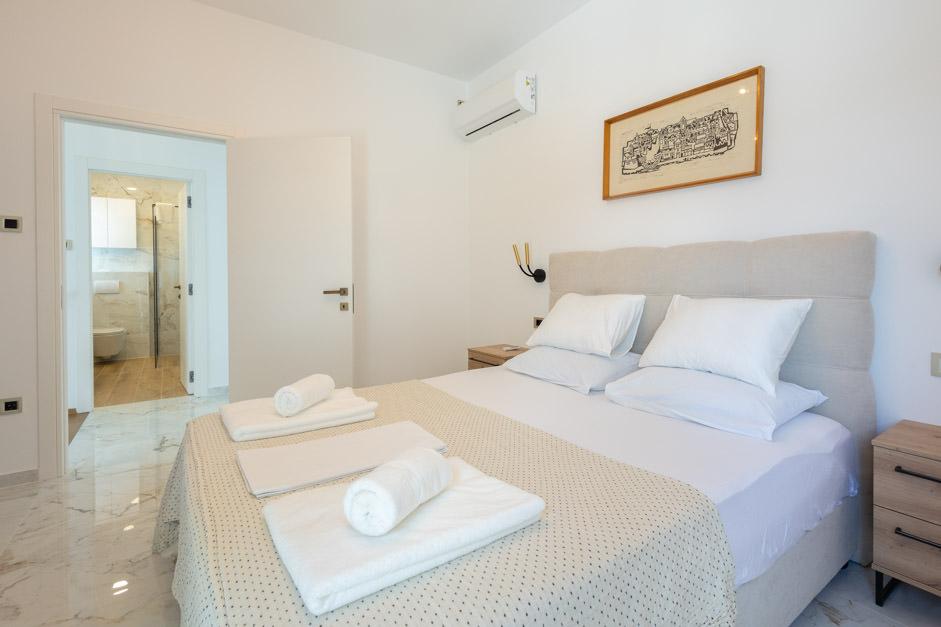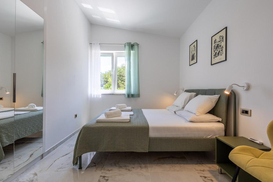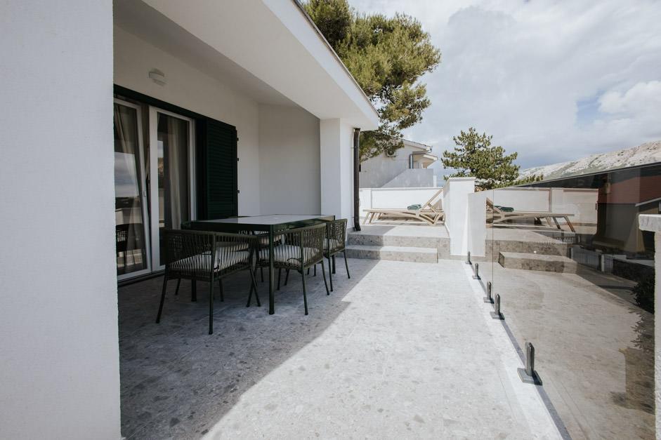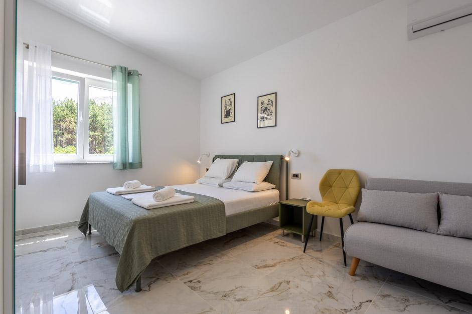 Unsere neu renovierte Villa Zlata befindet sich in Baška, der touristischen Perle der versteckten Bucht der Insel Krk. Das Haus liegt 400 m vom Stadtzentrum und 200 m vom Meer entfernt, dessen Wellen auf den 1800 m langen Kiesstrand treffen. Baška ist ein Ort mit einer reichen Vergangenheit und einem kulturellen Erbe, und nicht weit entfernt, in Jurandvor, befindet sich das berühmte Bašćanska ploča, eines der ältesten schriftlichen Denkmäler in kroatischer Sprache. Die Villa Zlata bietet Unterkunft für 4+2 Personen und ist auch haustierfreundlich, sodass auch Ihr Haustier gerne bei uns untergebracht wird. Es ist komplett dekoriert und ausgestattet und liegt in einer intimen Umgebung eines Pinienwaldes, wo Sie den neu gebauten privaten beheizten Pool genießen können. Das besondere Urlaubsvergnügen können Sie beim Entspannen am Außengrill und im Pavillon spüren, während sich die Kleinsten im sicheren Kinderspielbereich vergnügen können. Für den idealen Abschluss eines Sommertages entspannen Sie auf zwei Terrassen mit dem Duft von Kiefern und einem Blick auf die bezaubernde Bucht, wo sich das sanfte Blau des Meeres und des Himmels mit der Härte des riesigen Velebit in der Ferne vermischt.