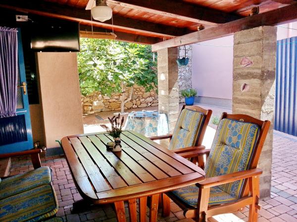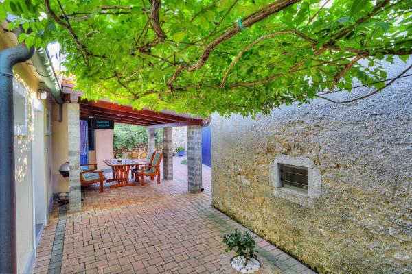 Die Wohnung befindet sich in einem ruhigen Teil des Zentrums der Altstadt von Baska, rustikales Aussehen und besteht aus einem Zimmer mit einem Doppelbett und einem Schlafsofa, Küche und Bad. Es ist renoviert, mit Kühlschrank, Mikrowelle, Kochfeld und Kochutensilien ausgestattet. Es hat einen Garten 70m2 mit eine überdachte Veranda, der von der Sonne schützt und Gartenmöbel. Auf dem Hof ​​wurden einheimische Pflanzenarten wie Olive, Rosmarin, Palme und Tekoma gepflanzt. Wohnung bietet Privatsphäre, jede Seite aus Sicht verdeckt. Mit Schatten der Baumkronen und einem dicken grünen Tekoma, die zu dem Haus erstreckt. Es ist nur 50 Meter vom ersten Strand entfernt, 30 m vom Restaurant und der erste Café, wo Sie einen ersten Kaffee am Morgen zu haben. Der berühmte große Strand ist nur 200m entfernt. Die Gäste können den freie Wi-Fi verwenden. Parkplatz ist 300 m von der Wohnung.
