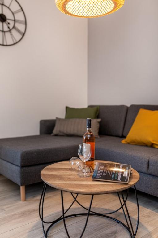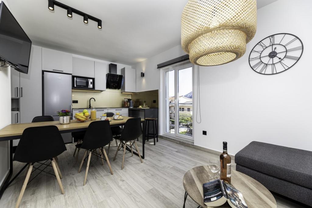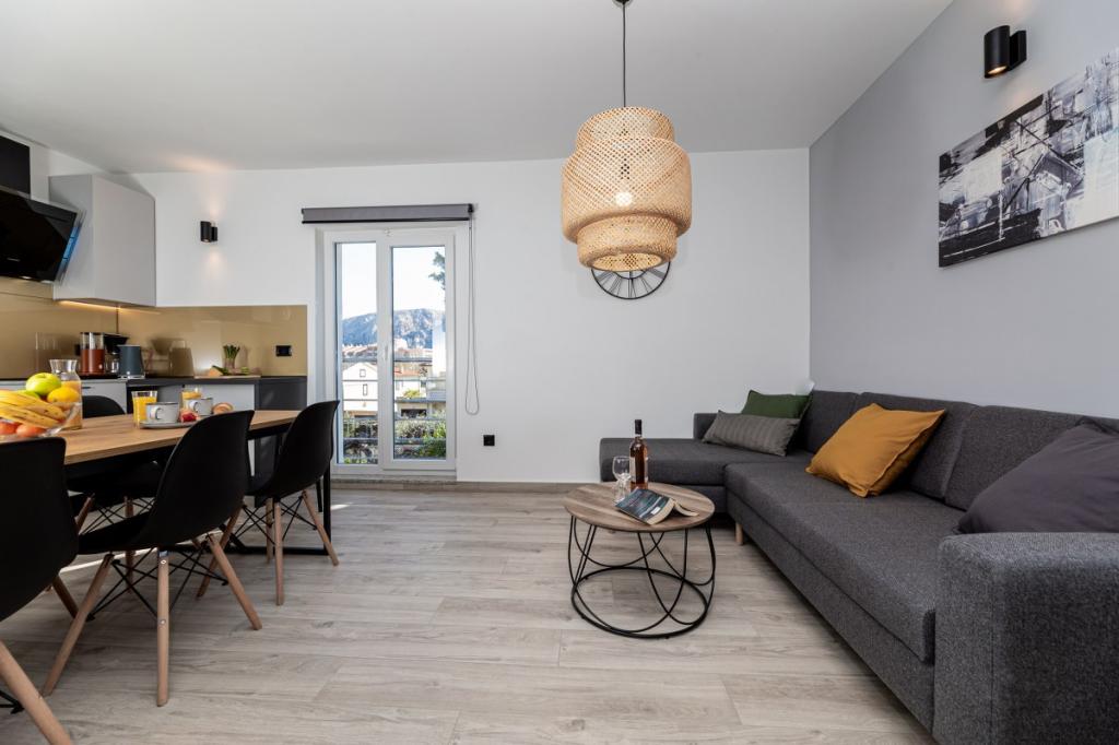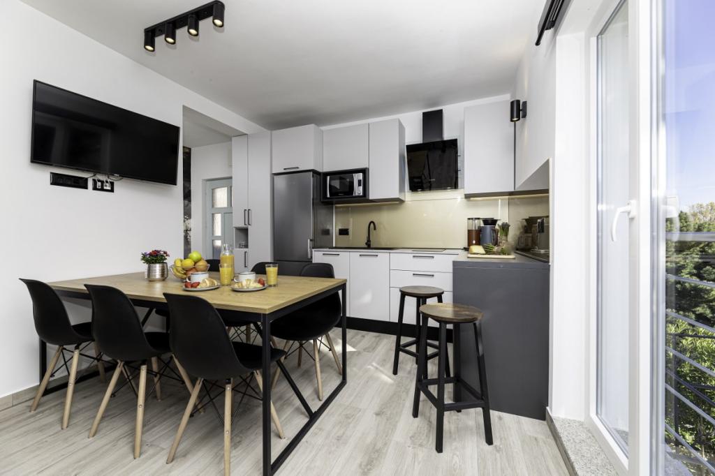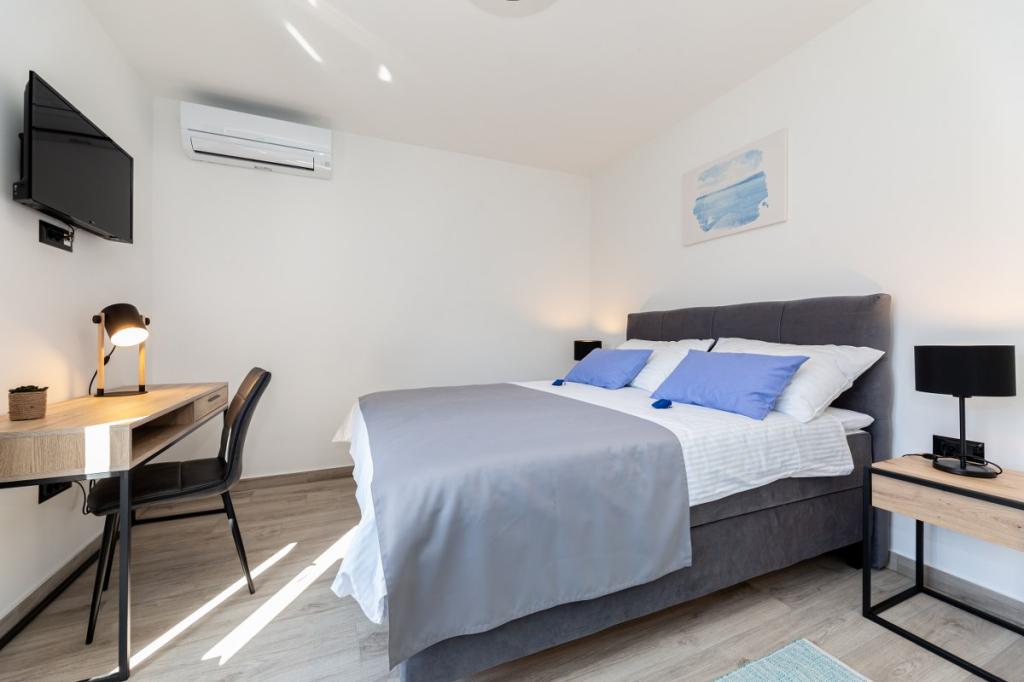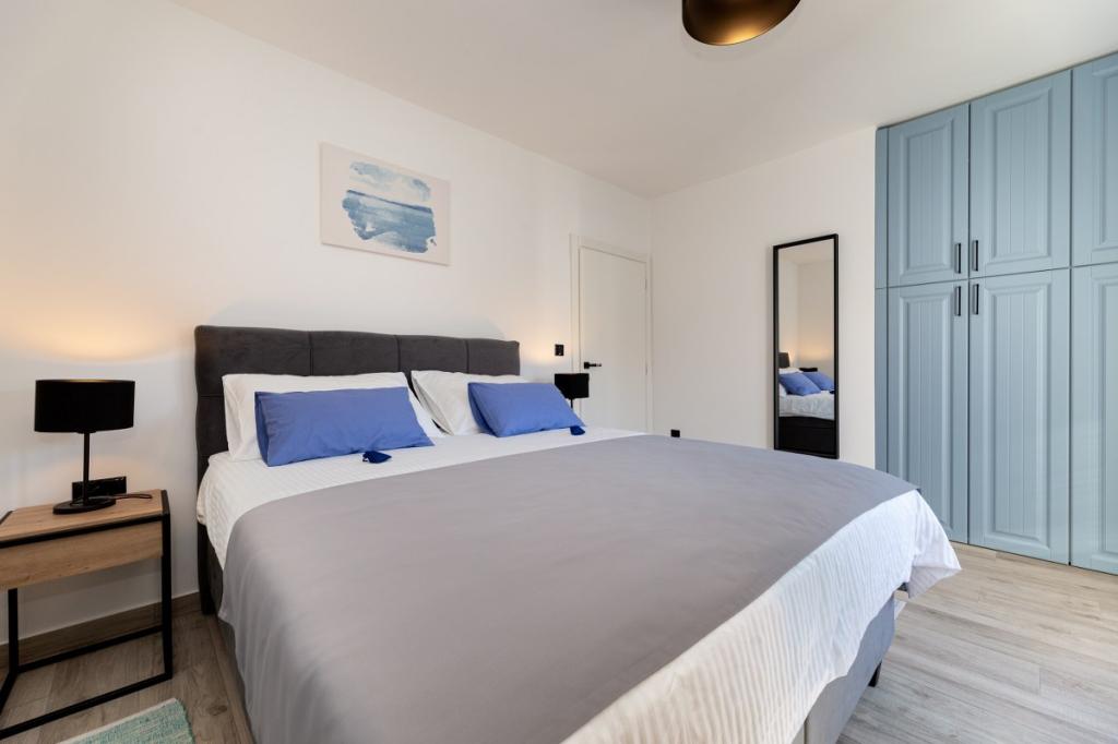 Moderne Wohnung in ruhiger Lage, ca. 200 m vom Meer entfernt. Es befindet sich im 1. Stock eines Einfamilienhauses. Die Anlage befindet sich 5 bis 10 Gehminuten vom Strand oder Stadtzentrum entfernt und verfügt über 2 Parkplätze. Die Wohnung besteht aus 3 Doppelzimmern, von denen 2 einen Balkon haben. Jedes Zimmer ist klimatisiert und verfügt über Sat-TV und einen Haartrockner. Küche ausgestattet mit Kühlschrank, Gefrierschrank, Geschirrspüler, Herd, Mikrowelle, Filterkaffeemaschine, Wasserkocher, Toaster und allen notwendigen Utensilien. Das Wohnzimmer ist ebenfalls klimatisiert und verfügt über Sat-TV. Die Wohnung verfügt über 2 Badezimmer mit Dusche. WI-FI im Preis inbegriffen. Zur Wohnung gehört auch eine Gartenterrasse mit Sitzgelegenheit und Grill. Wir wünschen Ihnen einen angenehmen Aufenthalt in unserer Wohnung.