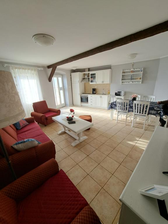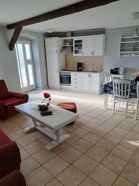 Die Wohnung befindet sich im alten Zentrum. Die Wohnung verfügt über zwei Schlafzimmer mit Doppelbetten und einem Zustellbett für 1 Person (ein Schlafsofa). Im Erdgeschoss gibt es ein Wohnzimmer, ein Esszimmer, eine Küche und ein Badezimmer mit separater Toilette. Im ersten Stock gibt es Zwei Schlafzimmer, eine Toilette und eine Duschkabine. Die Wohnung verfügt über einen Android-TV, eine Waschmaschine und eine Klimaanlage. Die Wohnung liegt 70 m vom Strand entfernt Mit dem Auto 300 m von der Wohnung entfernt ist der Verkehr in diesem Teil der Stadt verboten.