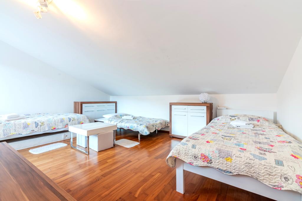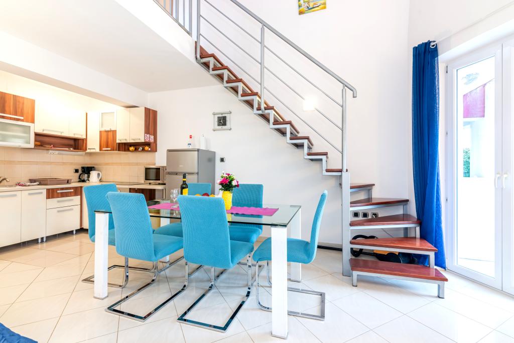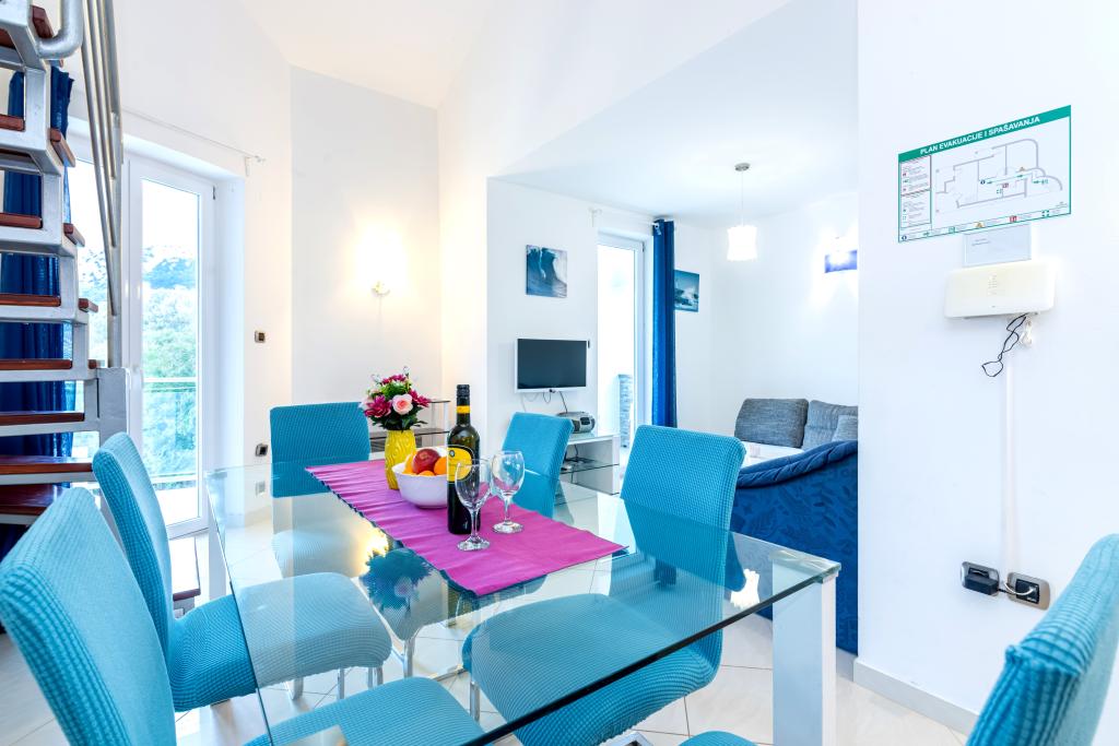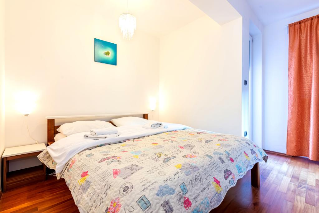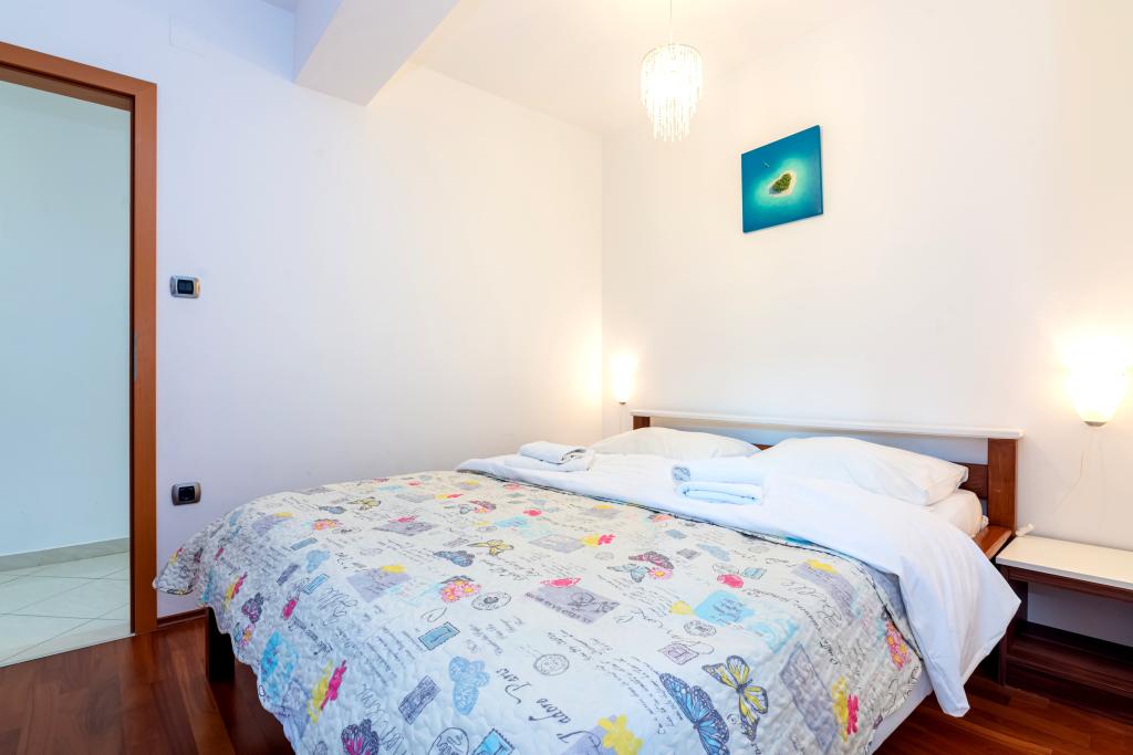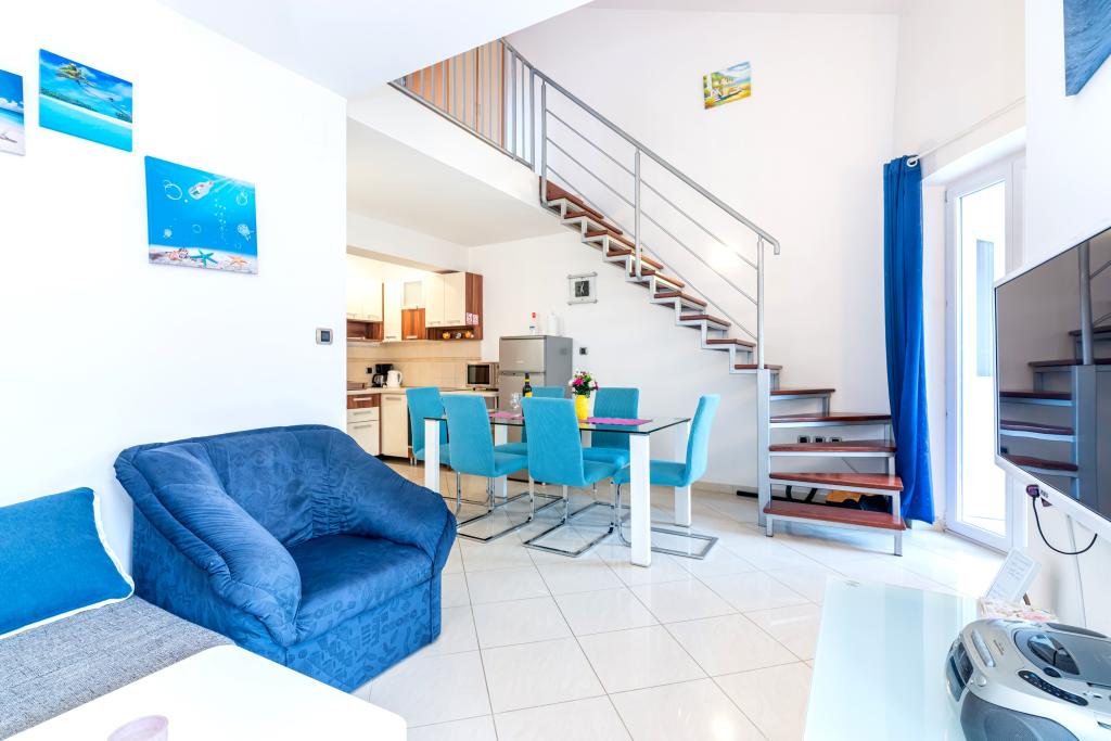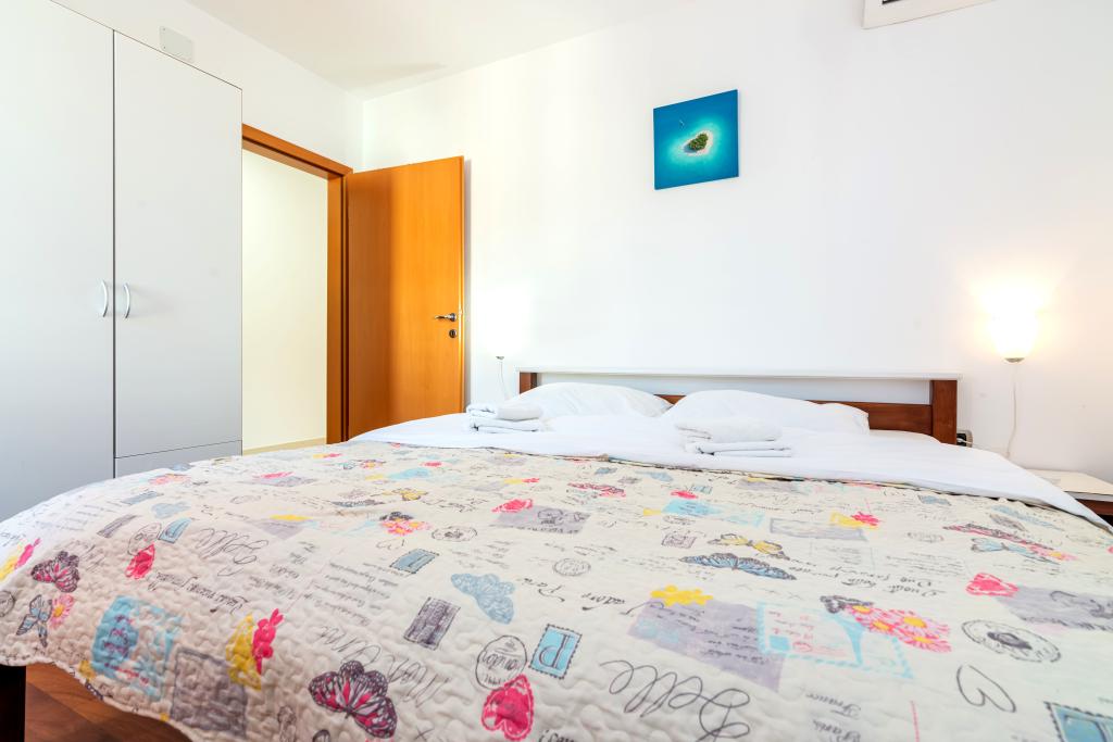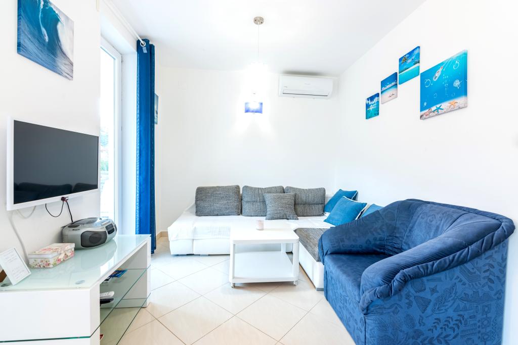 Die Wohnung befindet sich im 2. und 3. Stock. Es verfügt über 2 Doppelzimmer mit Doppelbetten, 1 Doppelzimmer mit Einzelbetten, Wohnzimmer mit Sofa für 2 Personen, 2 Badezimmer, voll ausgestattete Küche und Esszimmer. Dieses Apartment liegt etwa 3 Gehminuten vom zentralen Strand entfernt. Dieses moderne Apartment liegt in einer ruhigen Gegend und ist mit 3 Klimaanlagen, kostenfreiem WLAN, SAT-TV, einer großzügigen Terrasse und kostenlosen Privatparkplätzen vor dem Haus ausgestattet. Die Anlage befindet sich auch in der Nähe eines kleinen Ladens und Restaurants.