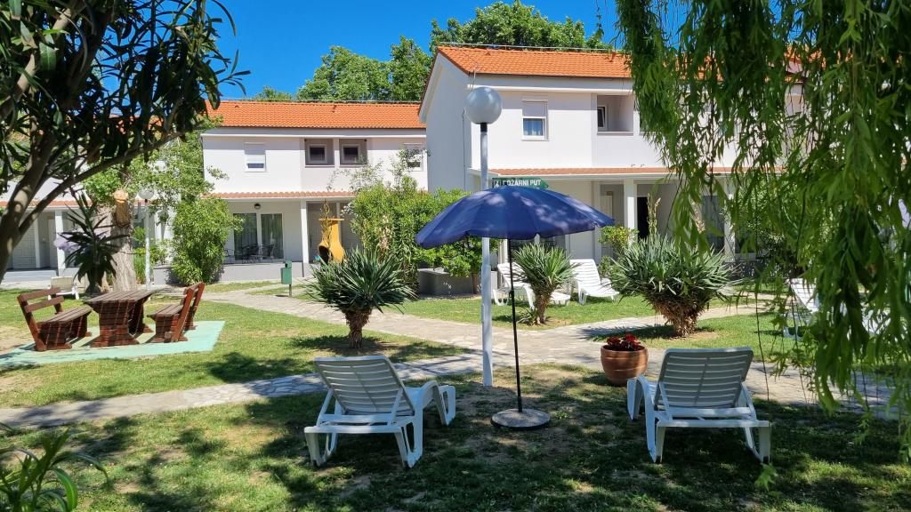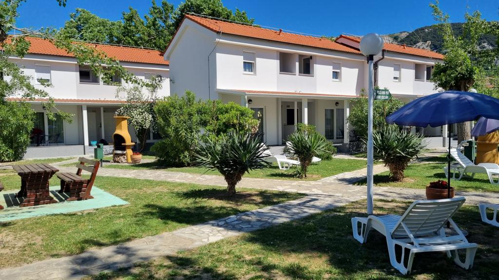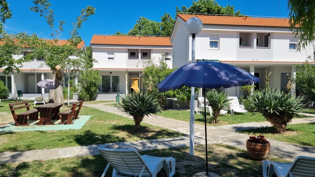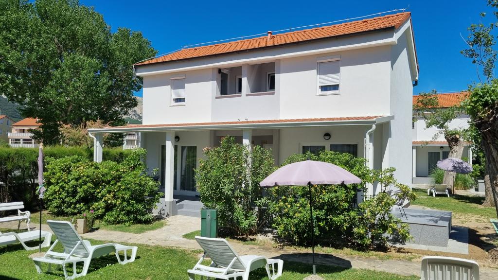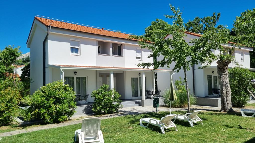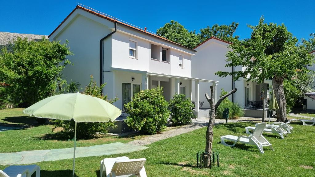 Die Villa Corinthia befindet sich in attraktiver Lage, nur wenige Gehminuten vom bekannten Strand Vela Plaža in Baška entfernt. Der Ferienkomplex Villa Corinthia besteht aus 10 freistehenden Villen mit jeweils zwei praktisch eingerichteten Apartments. Die Apartments erstrecken sich über zwei Etagen. Im Erdgeschoss befinden sich Küche, Wohnzimmer und Terrasse, im Obergeschoss Schlafzimmer, Badezimmer und Balkon. Den Gästen der Villa Corinthia steht ein grüner Außenbereich mit Grillmöglichkeiten und ein Gemeinschaftswaschraum zur Verfügung. Die klimatisierten Apartments sind mit WLAN, Sat-TV und Safe ausgestattet. Haustiere sind gegen Gebühr willkommen. Private Parkplätze stehen gegen Gebühr zur Verfügung.