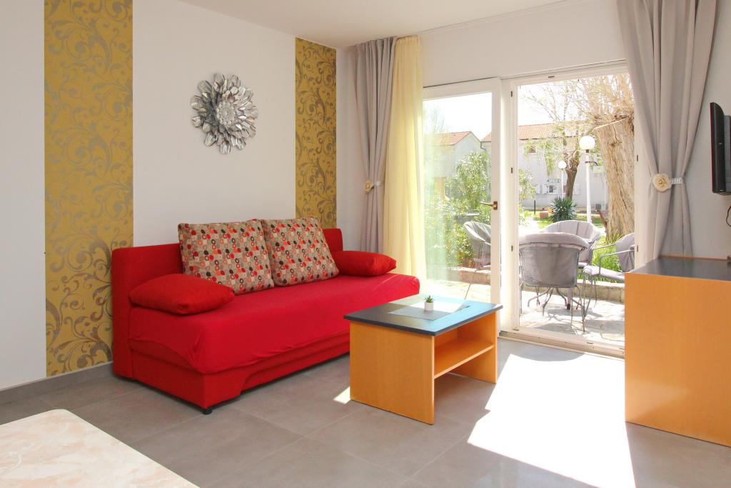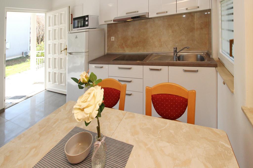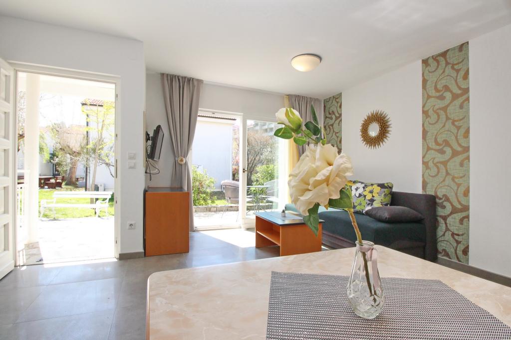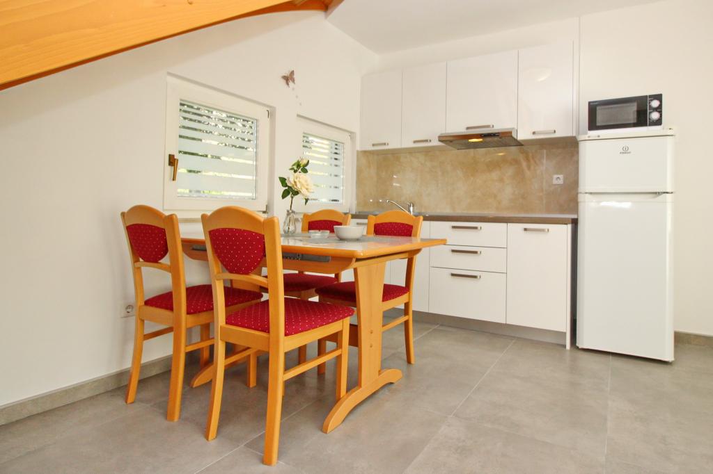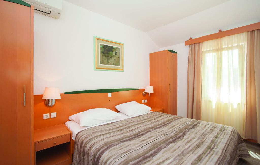 Die Villa Corinthia befindet sich in attraktiver Lage, nur wenige Gehminuten vom bekannten Strand Vela Plaža in Baška entfernt. Der Ferienkomplex Villa Corinthia besteht aus 10 freistehenden Villen mit jeweils zwei praktisch eingerichteten Apartments. Die Apartments erstrecken sich über zwei Etagen. Im Erdgeschoss befinden sich Küche, Wohnzimmer und Terrasse, im Obergeschoss Schlafzimmer, Badezimmer und Balkon. Den Gästen der Villa Corinthia steht ein grüner Außenbereich mit Grillmöglichkeiten und ein Gemeinschaftswaschraum zur Verfügung. Die klimatisierten Apartments sind mit WLAN, Sat-TV und Safe ausgestattet. Haustiere sind gegen Gebühr willkommen. Private Parkplätze stehen gegen Gebühr zur Verfügung.