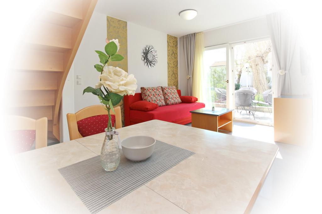 Mehr lesen UnterkunftseinheitenBitte beachten Sie, dass Reservierungen vom 01.04. bis 19.06. für mindestens 4 Nächte, vom 20.06. bis 04.09. für mindestens 7 Nächte (An- und Abreise samstags oder sonntags) und vom 05.09. bis 06.10. für mindestens 4 Nächte möglich sind. Die Preise werden Ihnen nach Eingabe des gewünschten Aufenthaltsdatums und der Personenzahl angezeigt. Die saisonalen Preise finden Sie in der Preisliste (rechts unter den Bildern der gewünschten Unterkunft). Zusätzlich fallen folgende Kosten an: Kurtaxe (Erwachsene 2,20 EUR/Person/Nacht; Kinder von 12 bis 18 Jahren 1,10 EUR/Person/Nacht), Anmeldegebühr (5 EUR/Person/einmalig) und Parkgebühr (3 EUR/Auto/Tag). Haustiere sind auf Anfrage erlaubt (15 EUR/Tier/Nacht). Für eine verbindliche Reservierung ist eine Anzahlung (per Banküberweisung) in Höhe von 30 % des Gesamtpreises erforderlich. Die restlichen Übernachtungskosten, Steuern, Anmeldegebühren und Parkgebühren sind bei Ankunft zu entrichten. Check-in ist ab 14:00 Uhr, Check-out bis 10:00 Uhr.