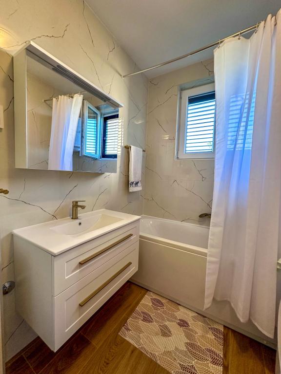 Das Apartmenthaus liegt in einem ruhigen, grünen Teil von Betina. Es verfügt über vier Apartments und ist nur fünf Gehminuten vom Zentrum und zehn Gehminuten vom Strand entfernt. Gästen stehen kostenlose Parkplätze und ein Grill im Garten zur Verfügung.