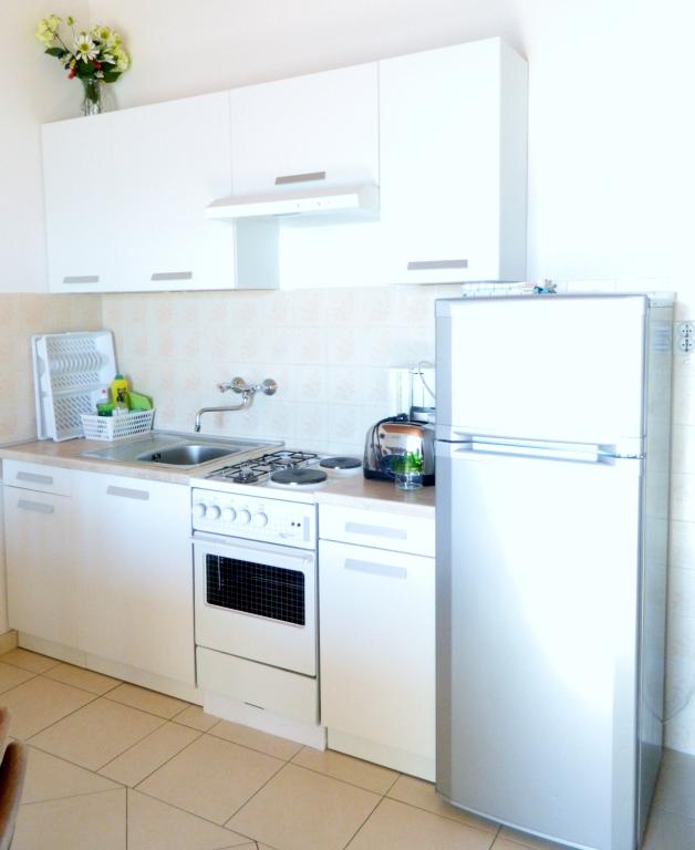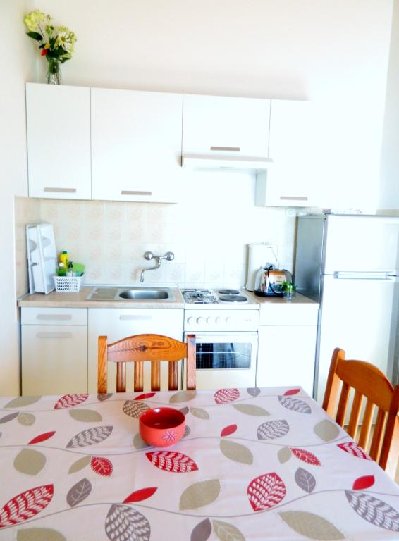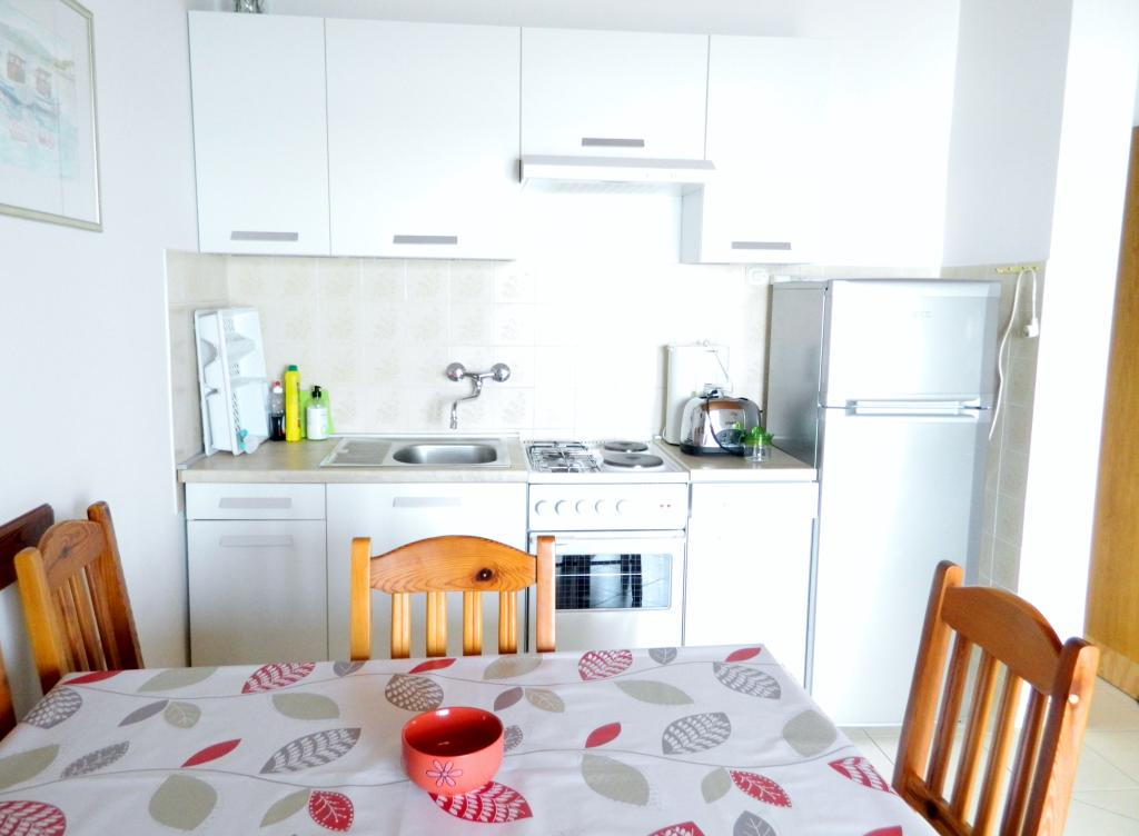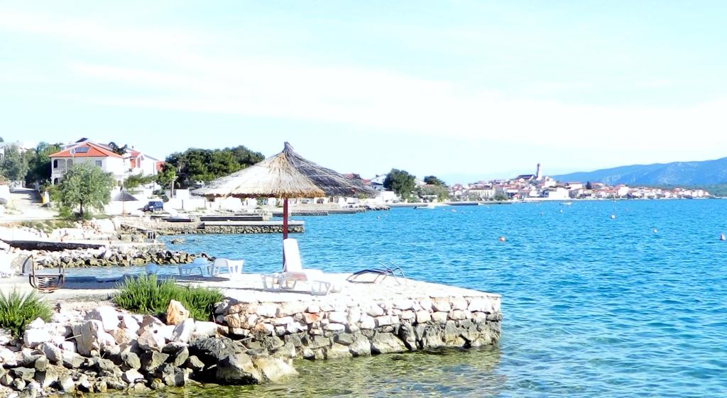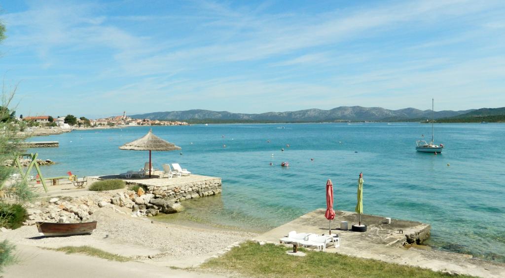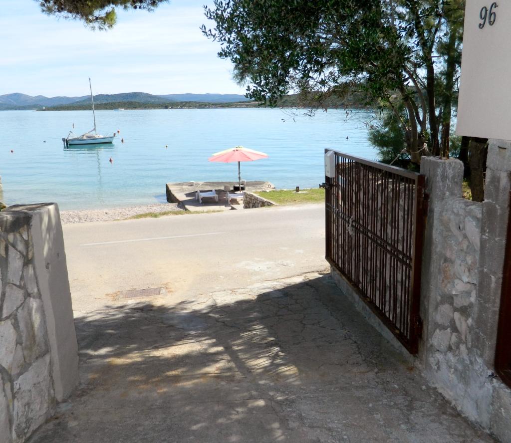 Die Wohnung eignet sich zur Unterbringung von zwei Paaren oder einer vierköpfigen Familie. Die Wohnung befindet sich im ersten Stock eines Einfamilienhauses, erste Reihe zum Meer in Betina. Die Wohnung ist komfortabel und geräumig. Es besteht aus zwei Schlafzimmern, einem Wohnzimmer, einer Küche und einem Badezimmer. Jedes Zimmer verfügt über zwei Betten (Doppelbett). Das Wohnzimmer verfügt über ein Sofa, einen Fernseher und WLAN-Internetzugang. Die Küche ist zum Kochen von Mahlzeiten ausgestattet (Herd, Backofen, Kühlschrank, Espressomaschine, Wasserkocher, Toaster, Mixer, Mikrowelle, Besteck und Kochutensilien). Jedes Zimmer verfügt über eine eigene Klimaanlage. Vom Wohnzimmer aus hat man Zugang zu einer großen Terrasse mit Meerblick. Im Hof hinter dem Haus gibt es einen Parkplatz für ein Auto, eine Außendusche und einen Außengrill. Vor dem Haus befindet sich ein Strand zum Schwimmen und Sonnenbaden, Sonnenschirme und Sonnenliegen. Die Stadt Betina liegt etwa 800 Meter von der Wohnung entfernt, ein 10-minütiger bequemer Spaziergang am Meer entlang.
